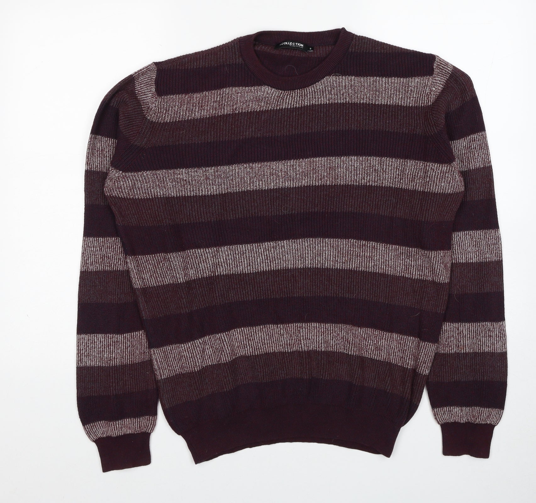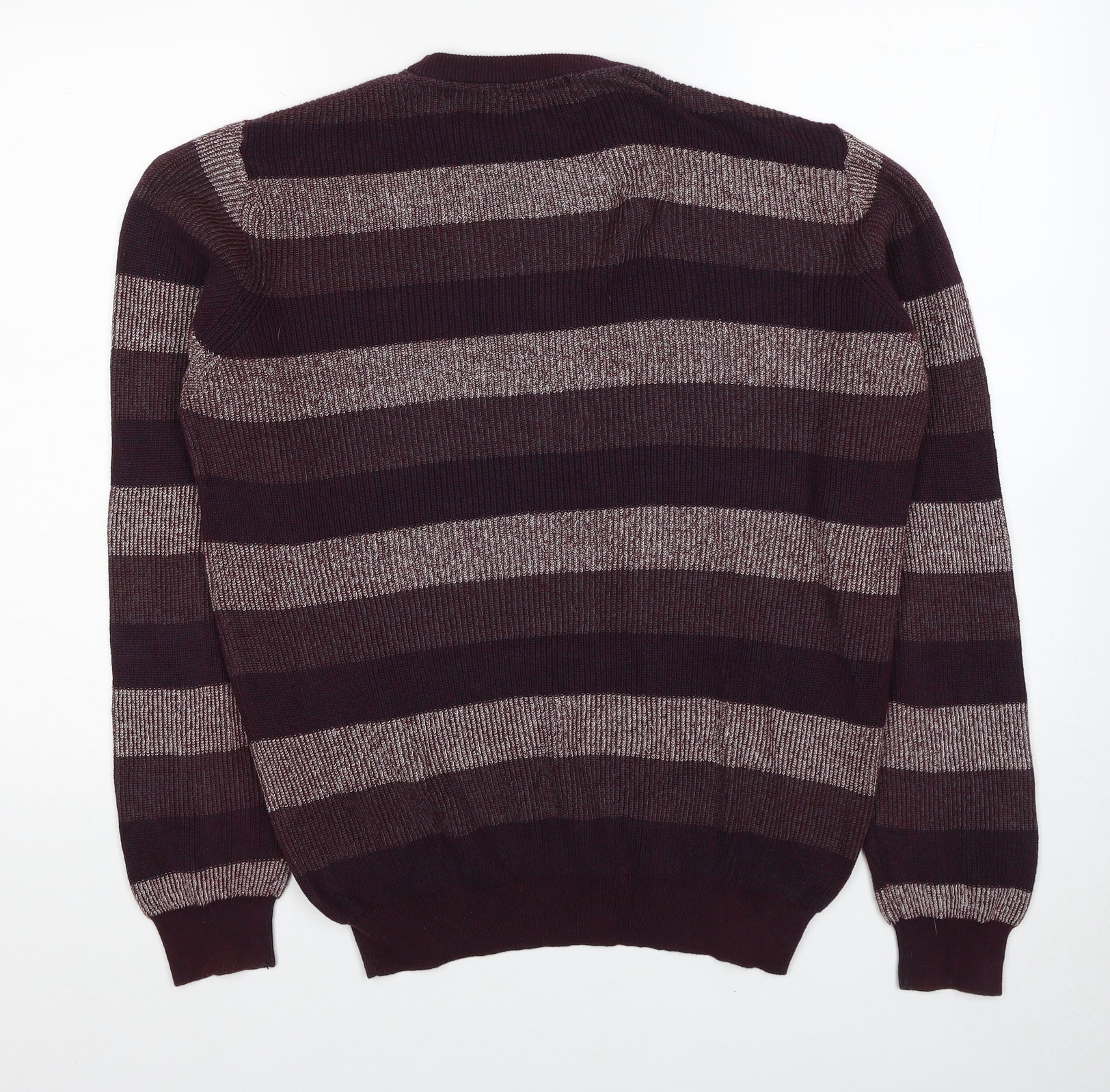 Debenhams Mens Red Round Neck Striped Cotton Pullover Jumper Size S Long Sleeve