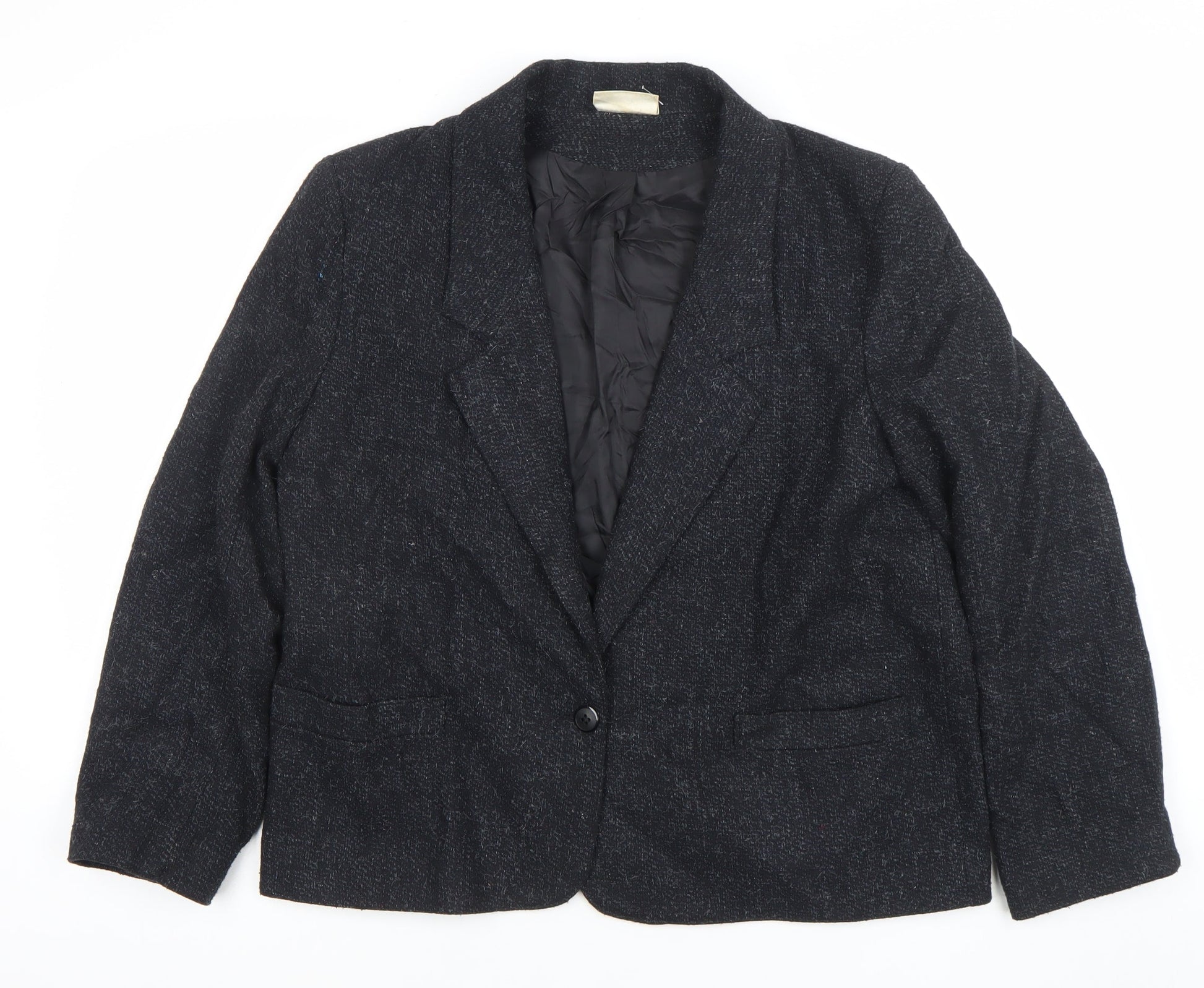 Debenhams Women Black Size 10 Tweed Wool Blend Single Breasted Blazer