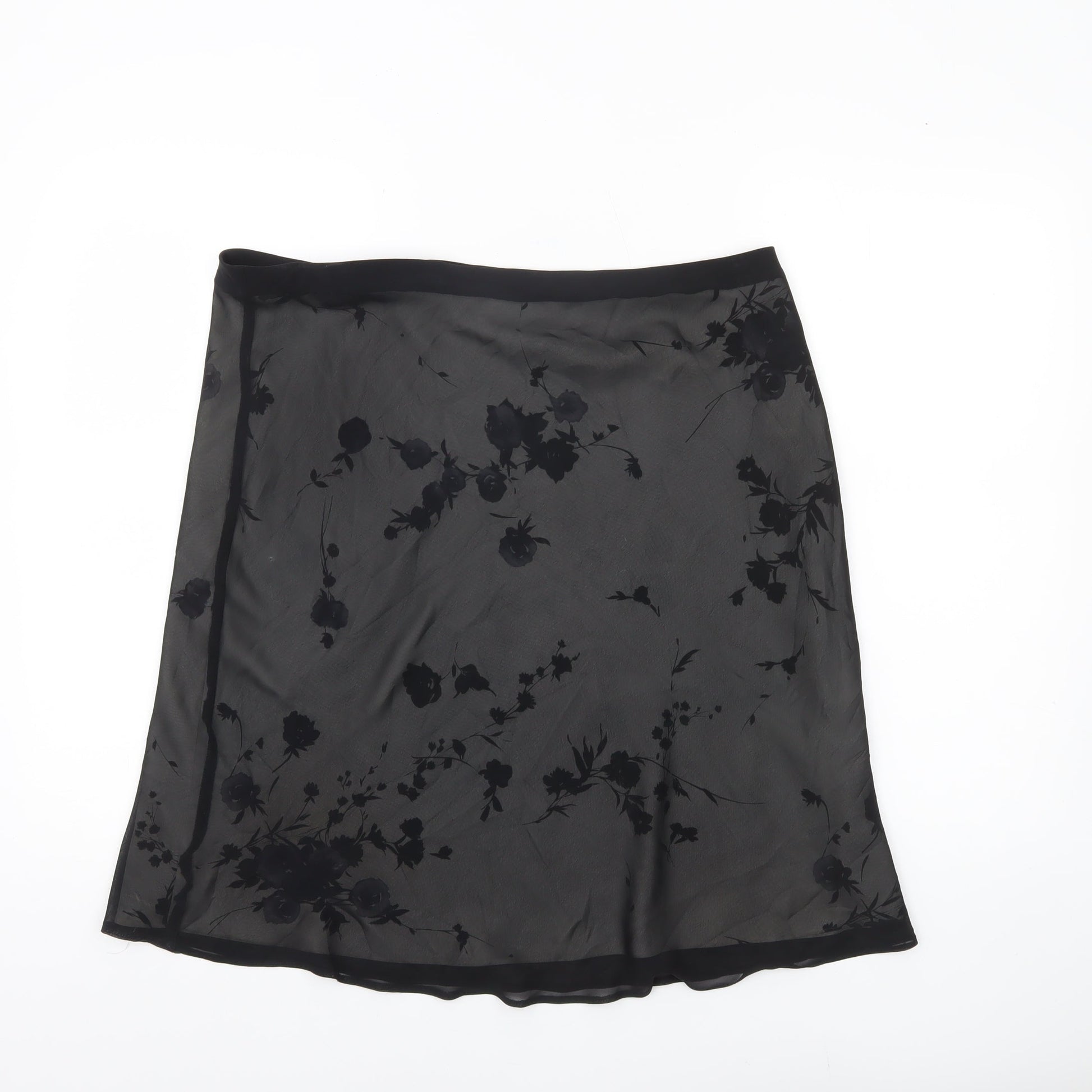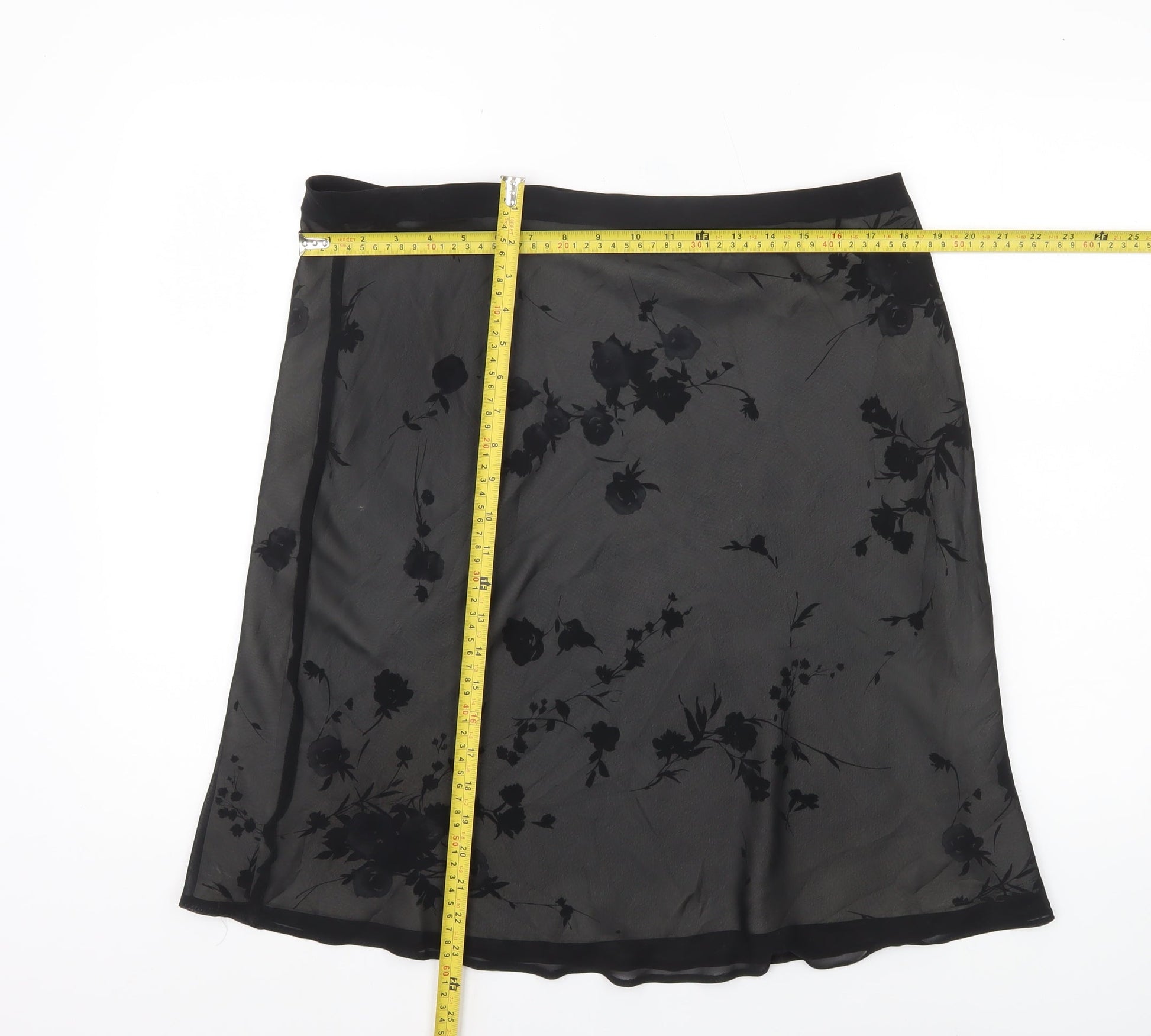 Debenhams Women’s Black Floral A-Line Knee Length Skirt Size 16