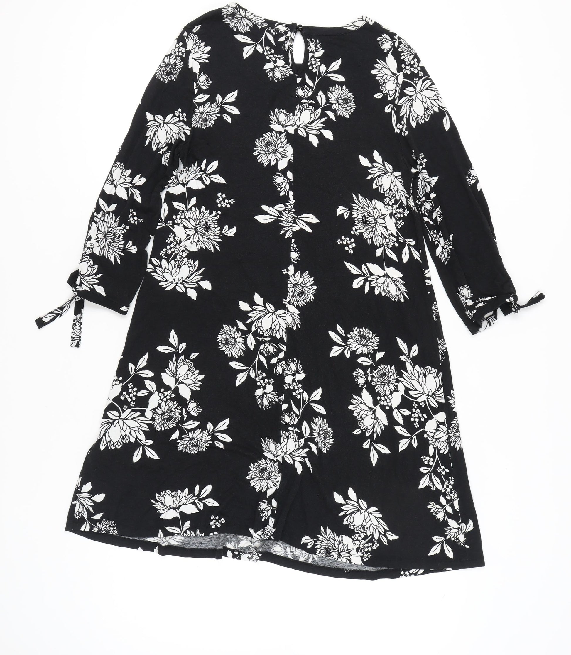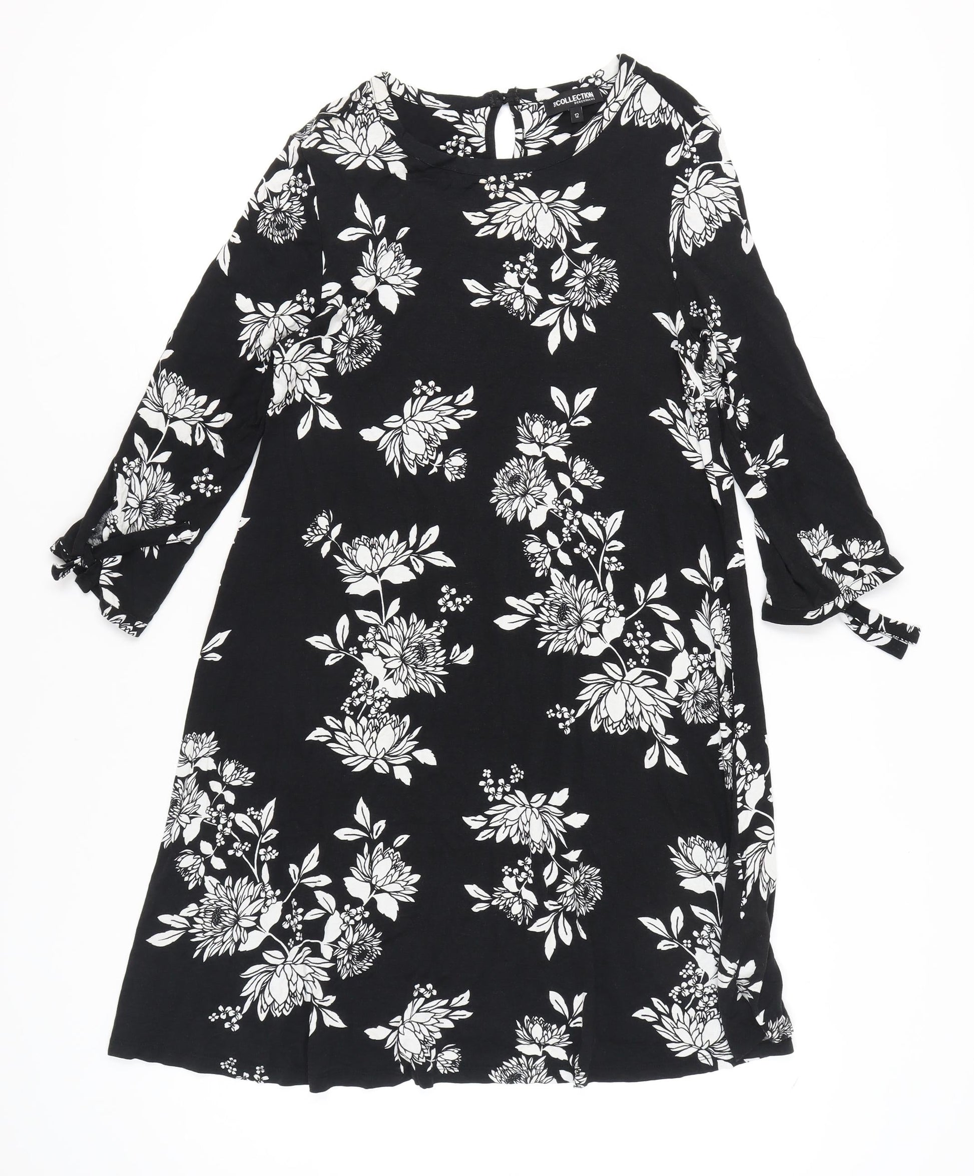 Debenhams Women’s Black Floral Shift Dress Size 12 Knee Length