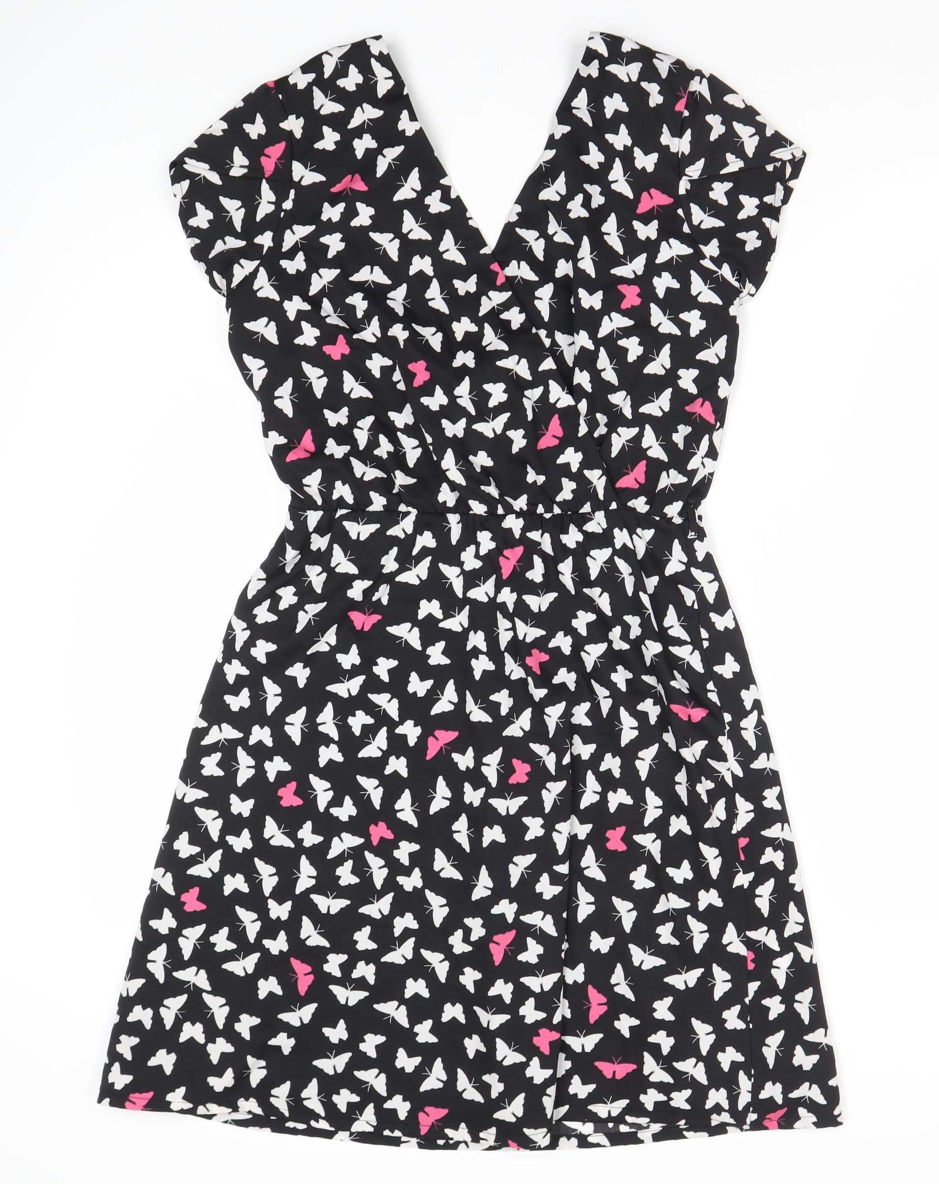 Debenhams Women's Black Butterfly A-Line Dress Size 8