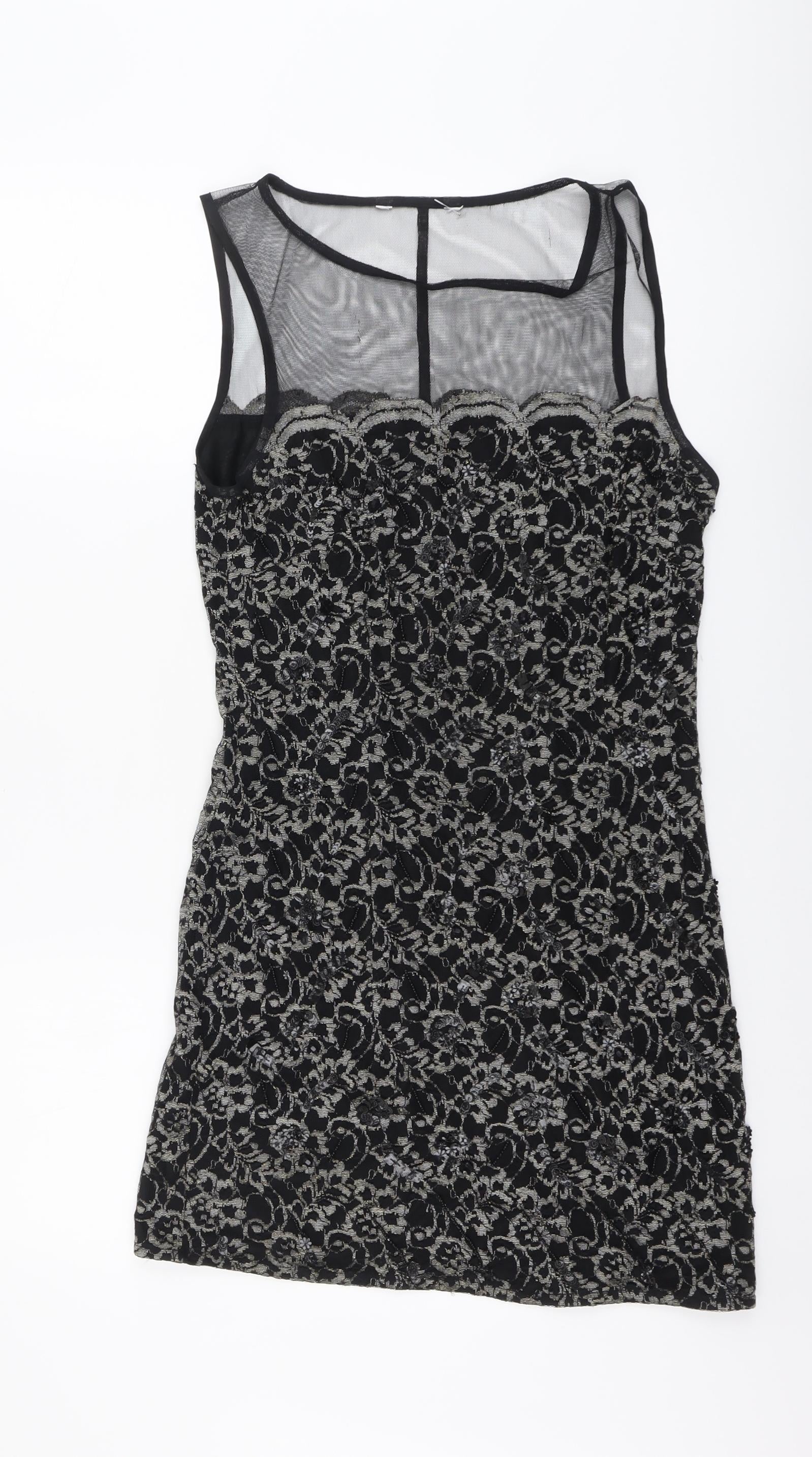 Debenhams Womens Black Geometric Nylon A-Line Size 12 Round Neck Pullover