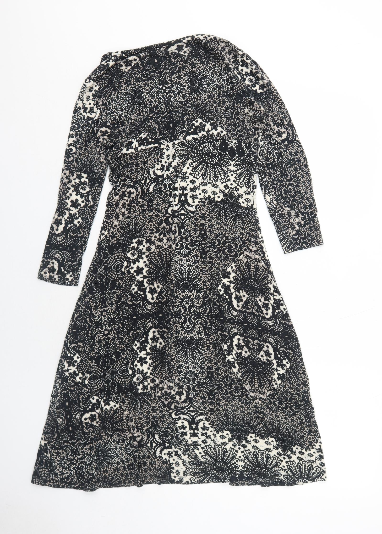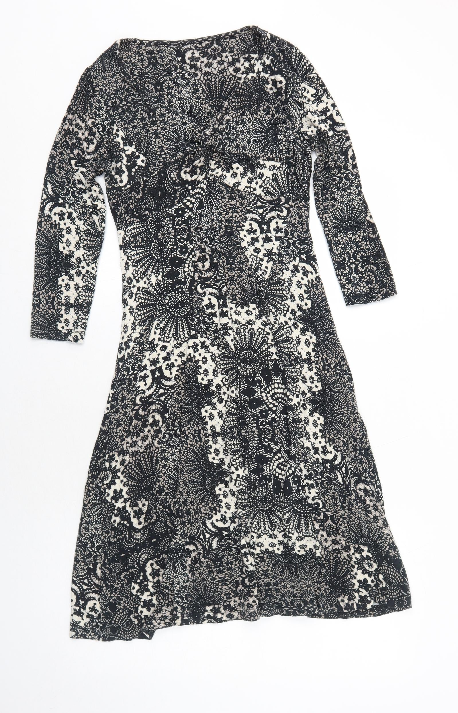 Debenhams Womens Black Geometric Viscose Trapeze & Swing Size 8 Round Neck Pullover