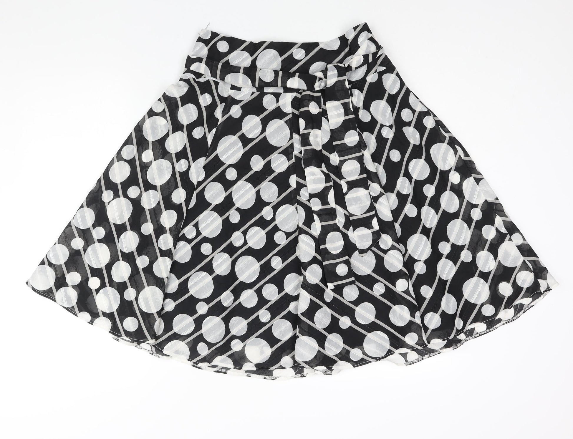 Debenhams Womens Black Polka Dot Polyester Flare Skirt Size 12 Zip - Belted