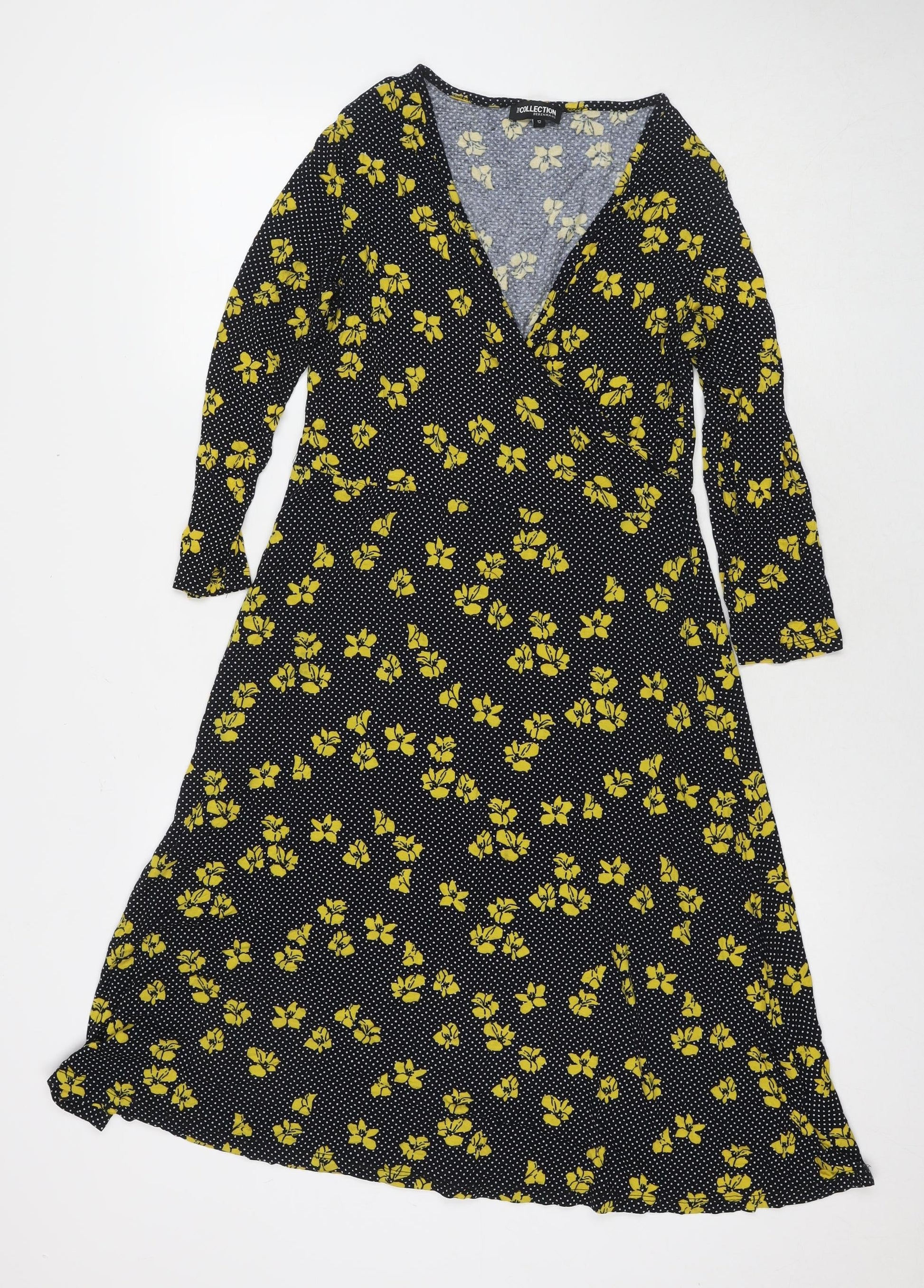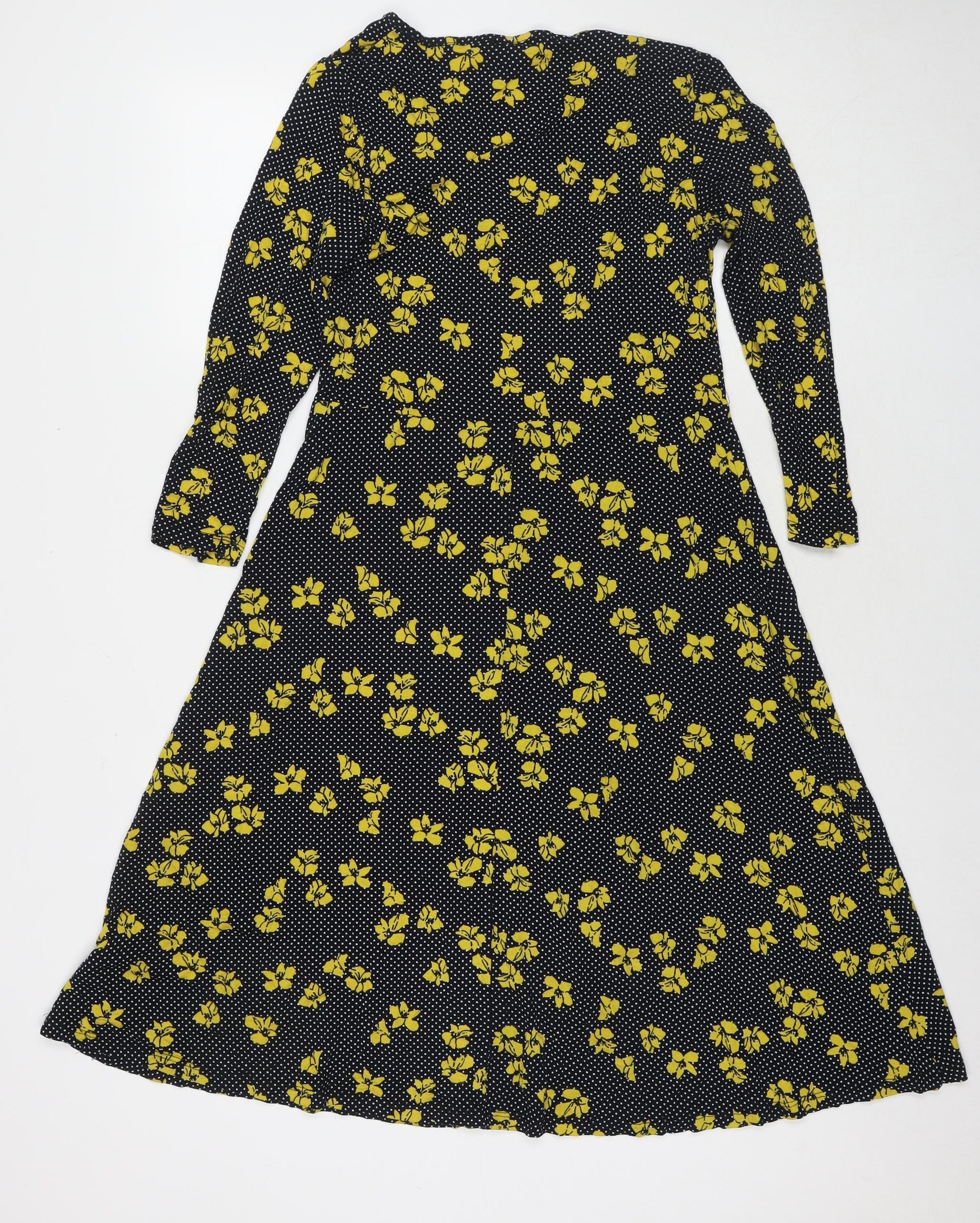 Debenhams Womens Black Polka Dot Viscose Fit & Flare Size 12 V-Neck Pullover - Flowers