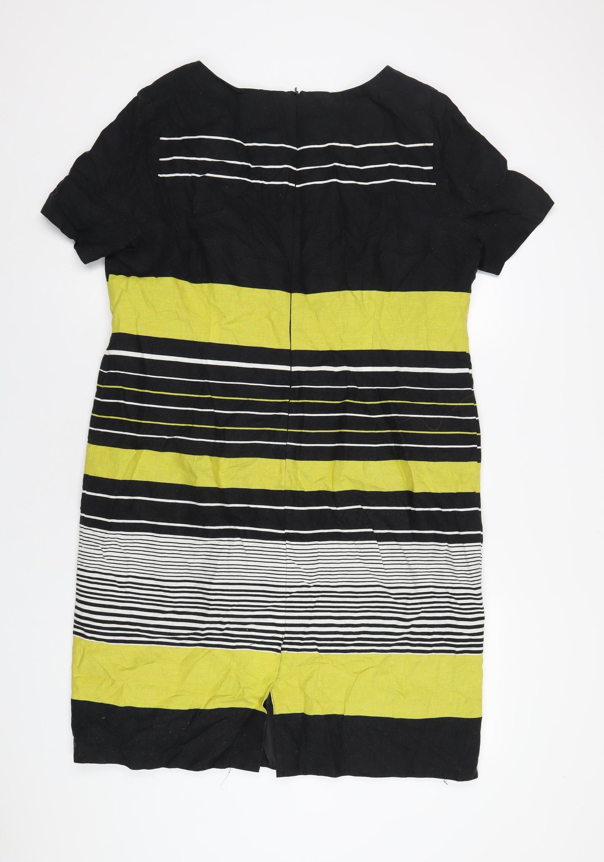 Debenhams Womens Black Striped Cotton A-Line Size 18 Round Neck Zip