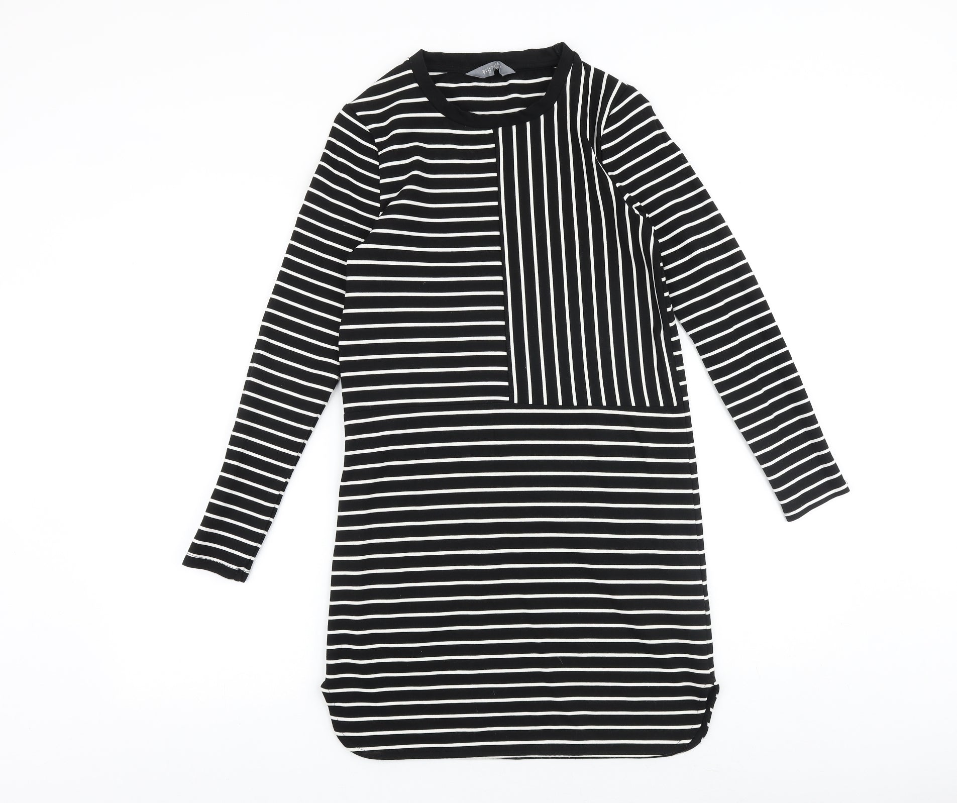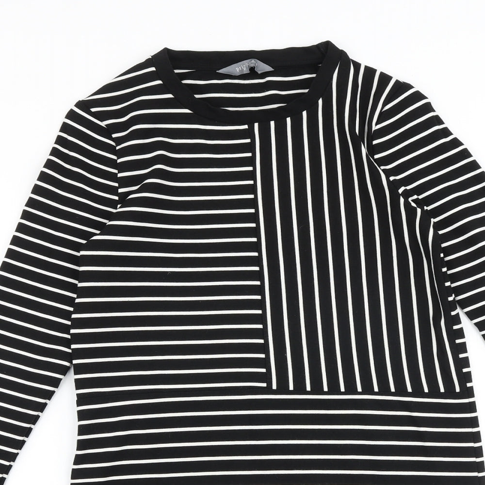 Debenhams Womens Black Striped Viscose A-Line Size 10 Round Neck Pullover