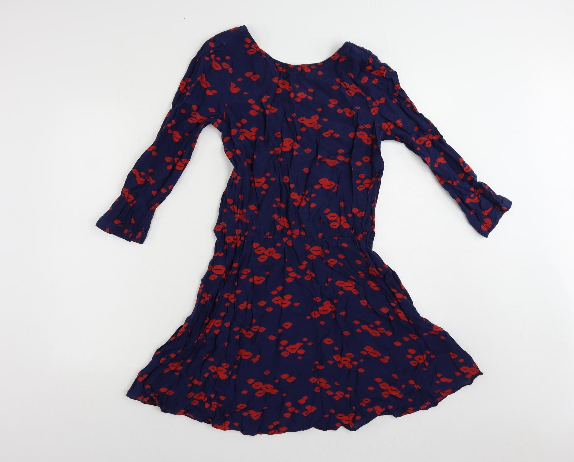 Debenhams Womens Blue Viscose Fit & Flare Size 10 V-Neck Pullover