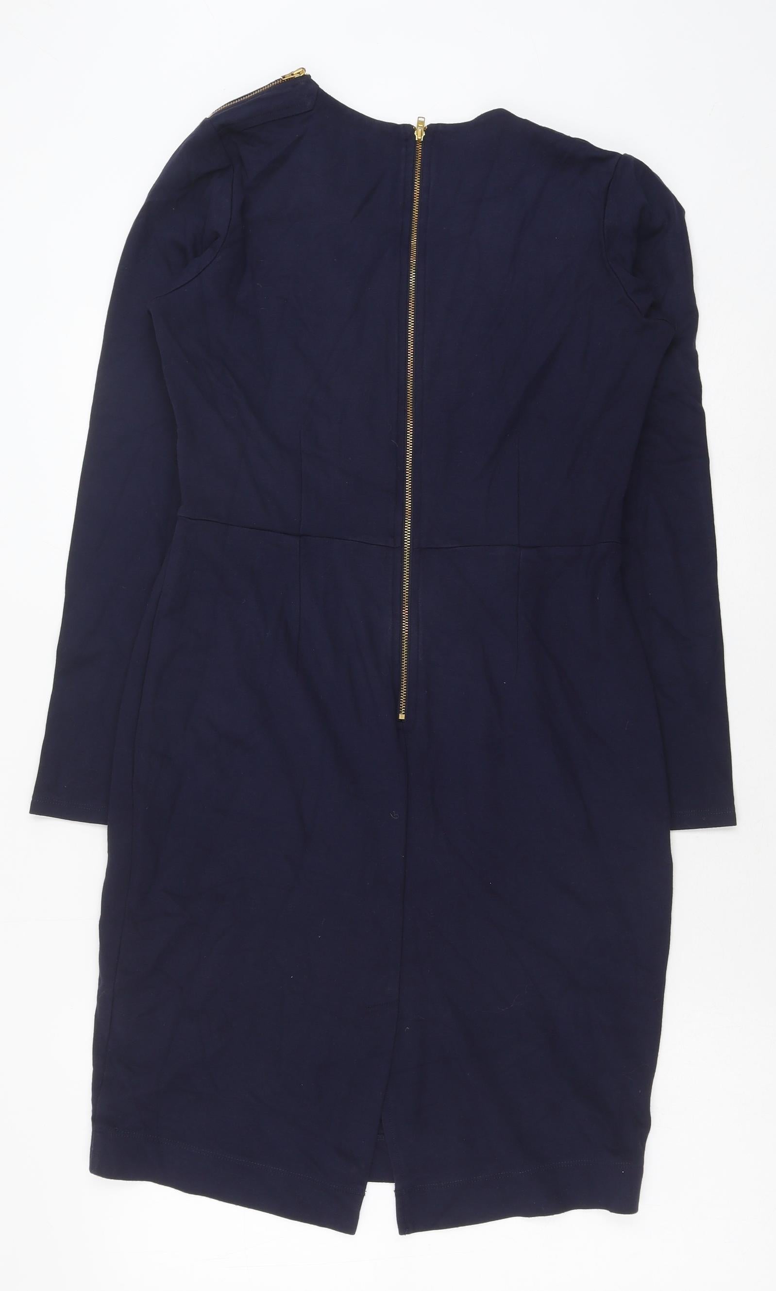 Debenhams Womens Blue Viscose Pencil Dress Size 12 V-Neck Zip