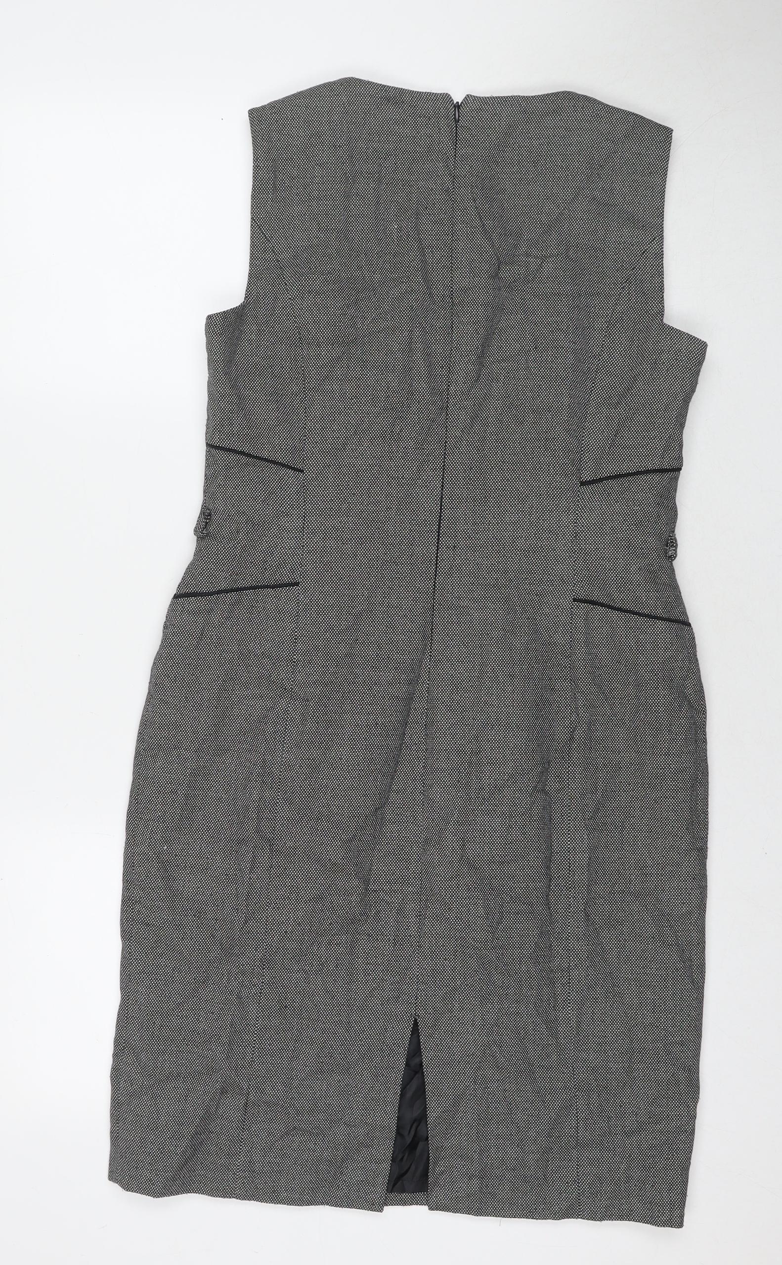 Debenhams Womens Grey Geometric Polyester A-Line Size 12 Round Neck Zip