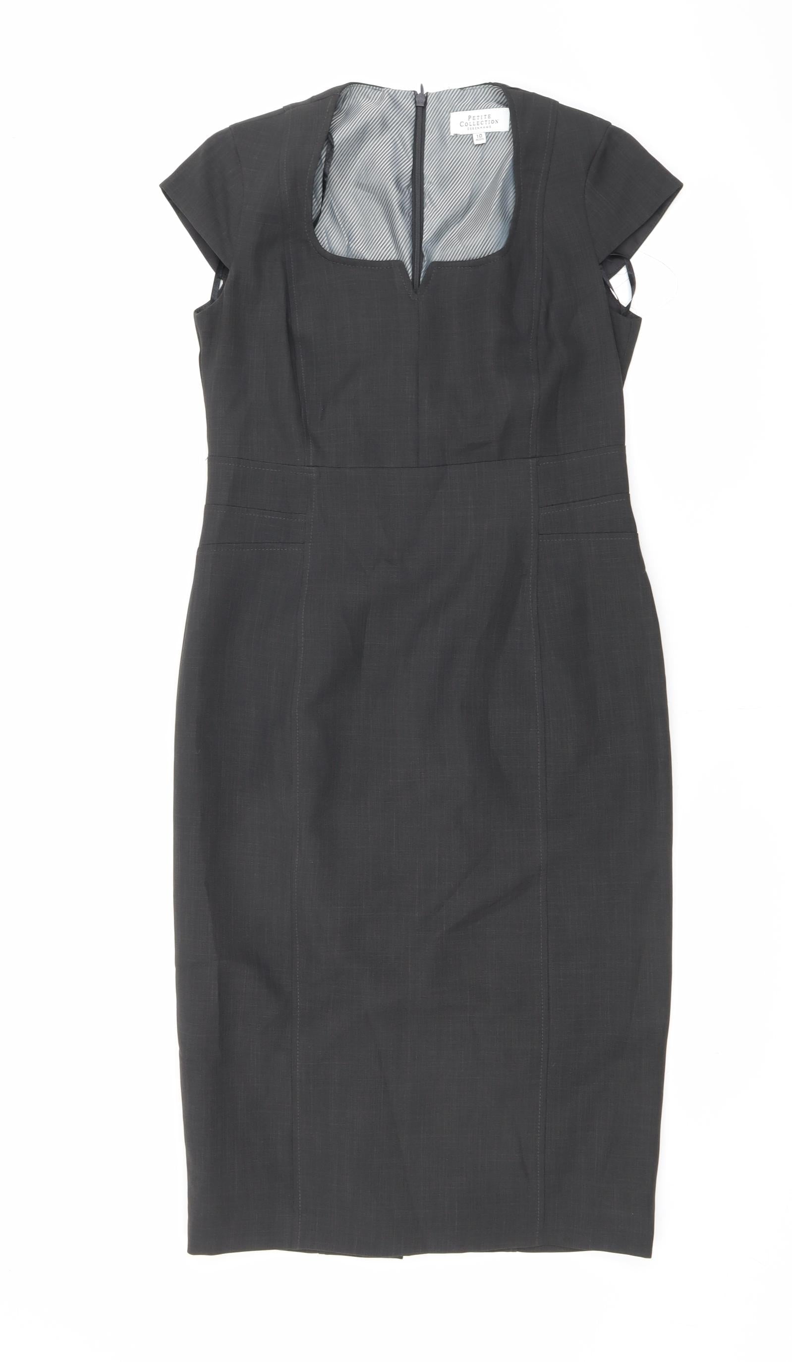 Debenhams Womens Grey Polyester Pencil Dress Size 10 Square Neck Zip