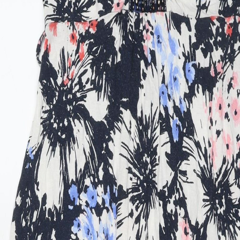Debenhams Womens Multicoloured Floral Viscose Maxi Size 10 V-Neck Pullover - Beaded Detail