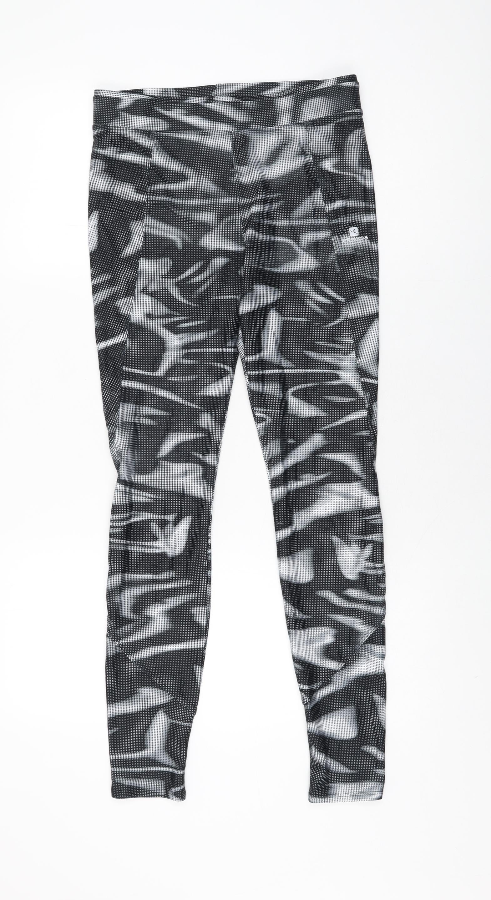DECATHLON Womens Black Geometric Polyester Pedal Pusher Leggings Size 30 in L31 in Regular Pullover
