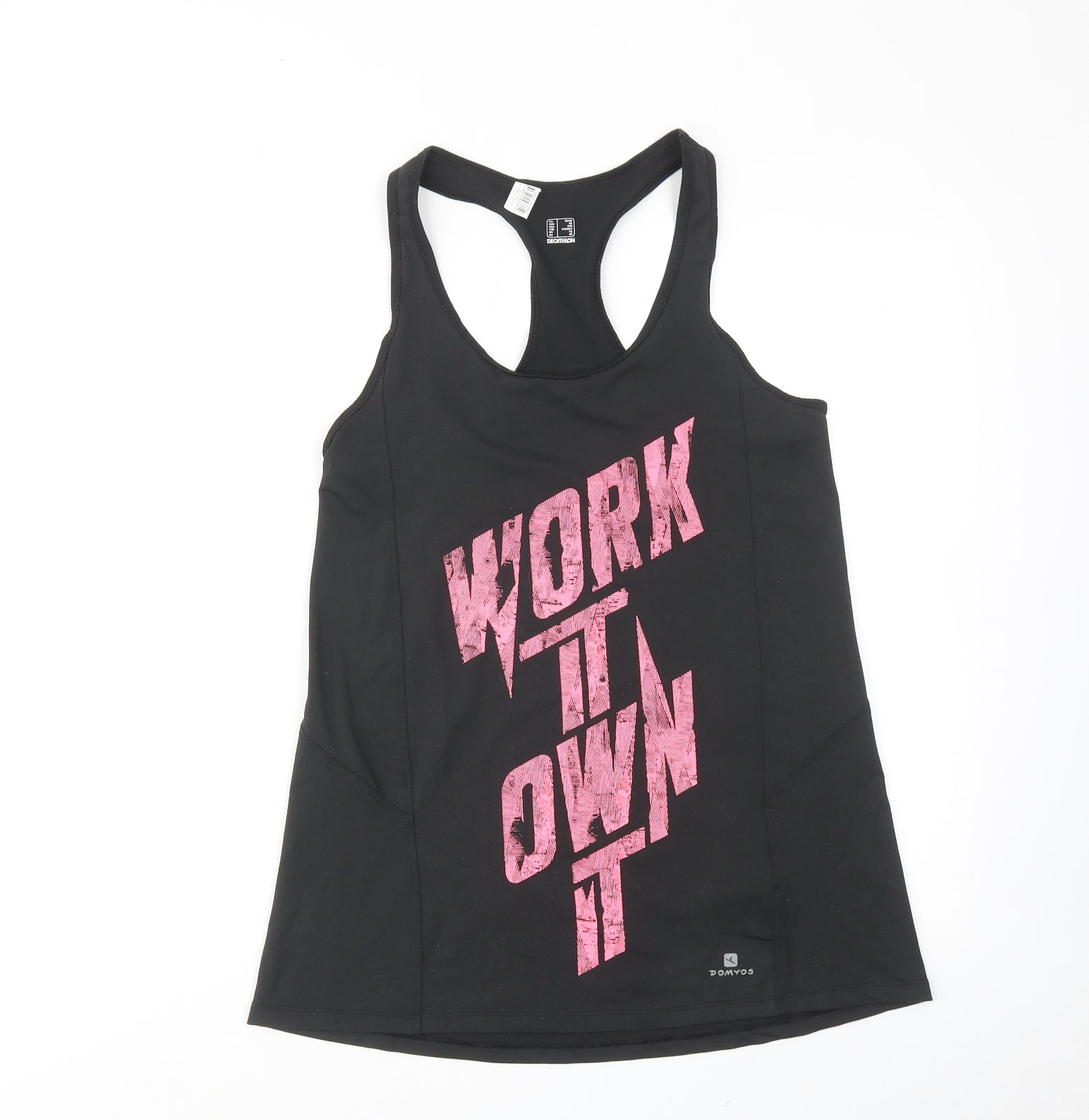 DECATHLON Womens Black Polyester Basic Tank Size S Scoop Neck Pullover - Slogan