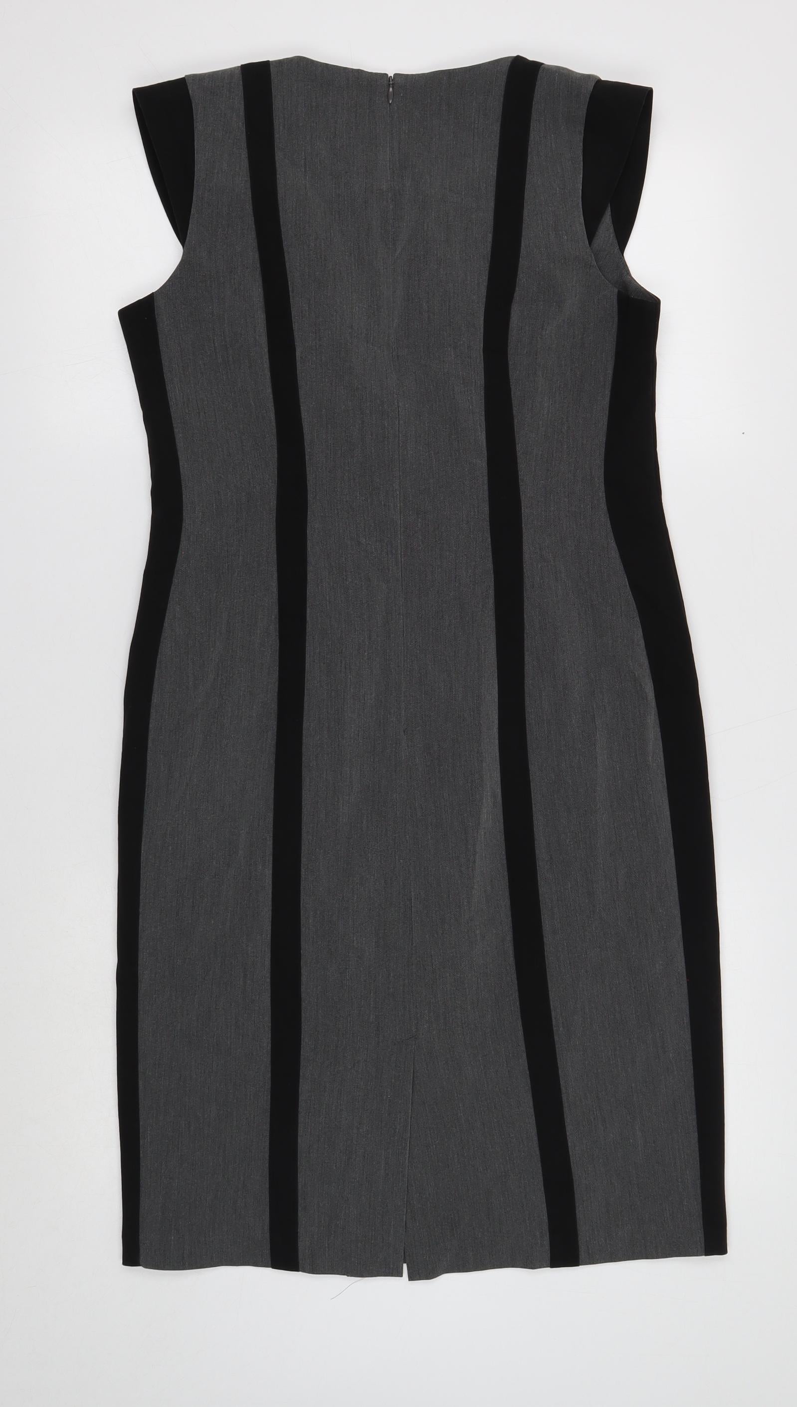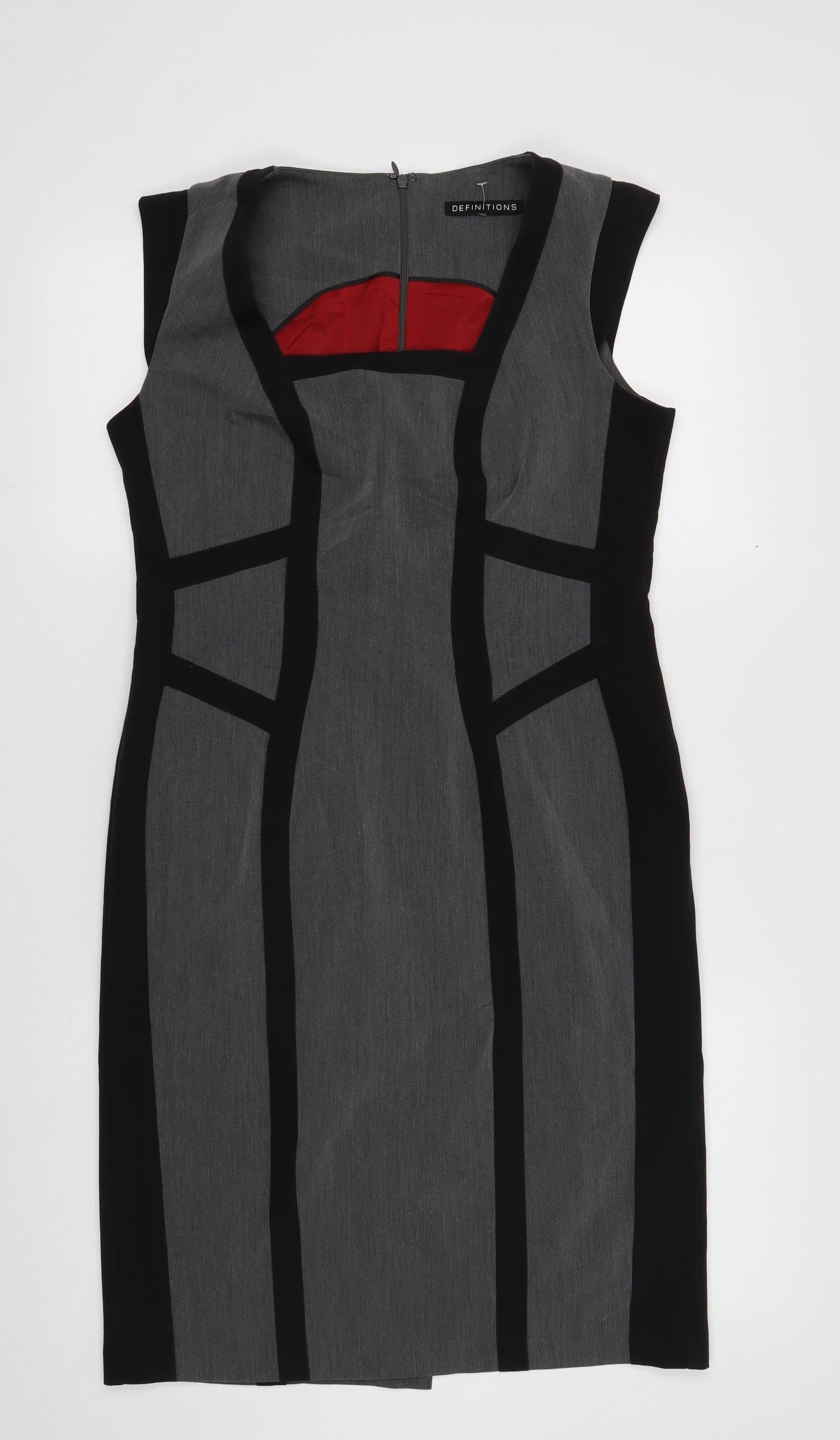 Definitions Womens Grey Polyester Pencil Dress Size 12 Square Neck Zip - Contrasting Trim