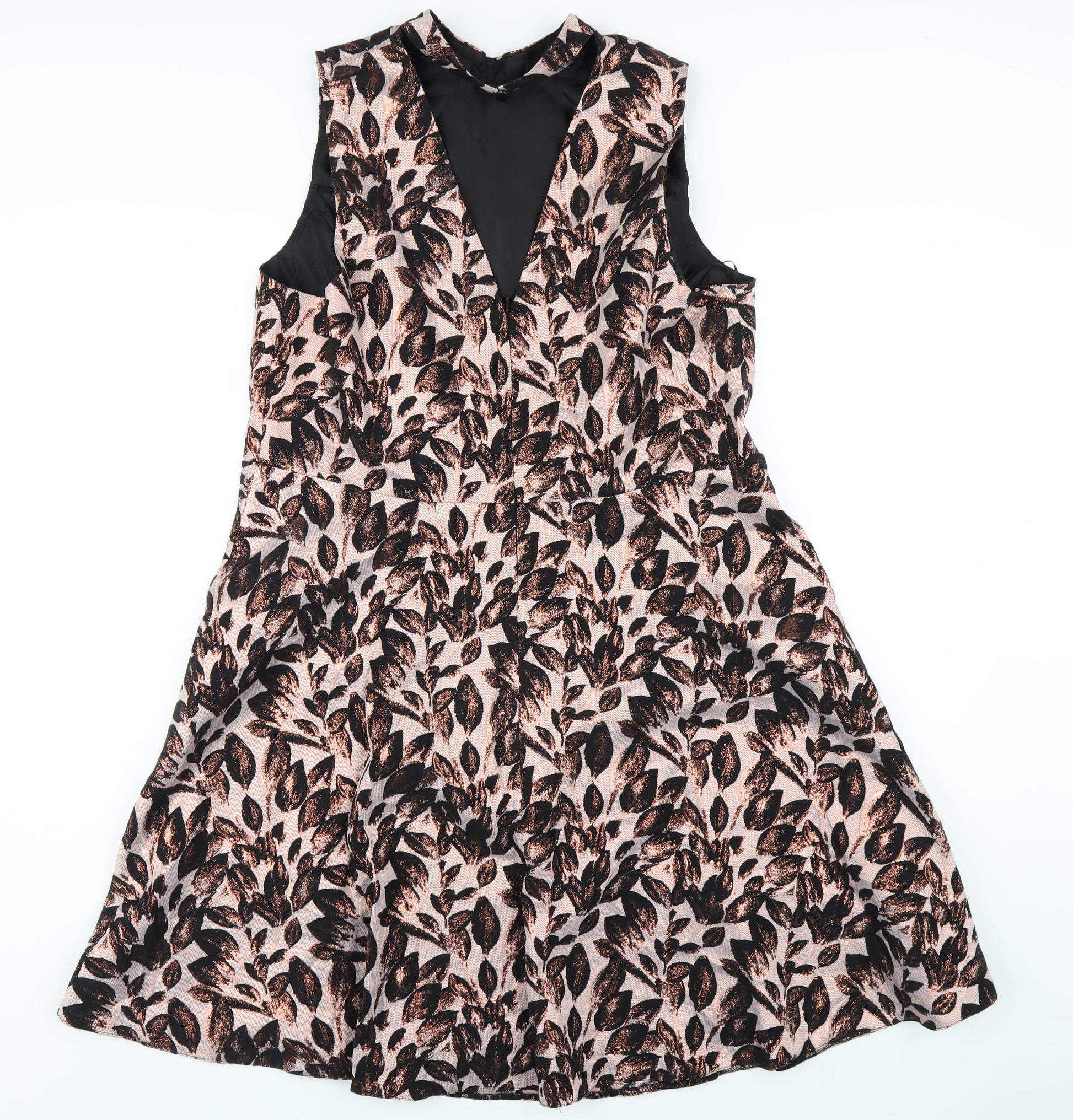 Definitions Womens Pink Geometric Polyester A-Line Size 18 Round Neck Zip