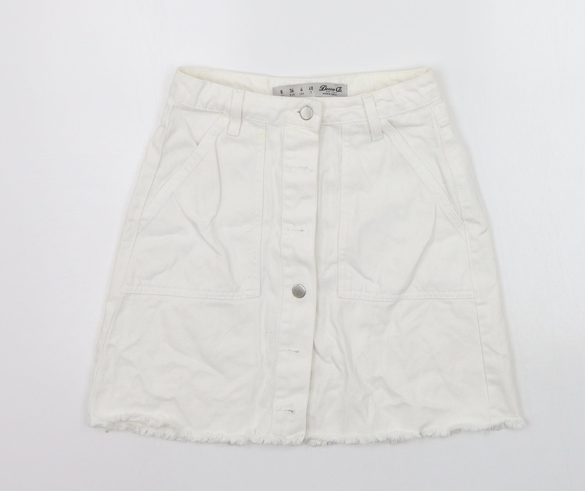 deniem co Womens Silver Houndstooth A-Line Skirt Size 8