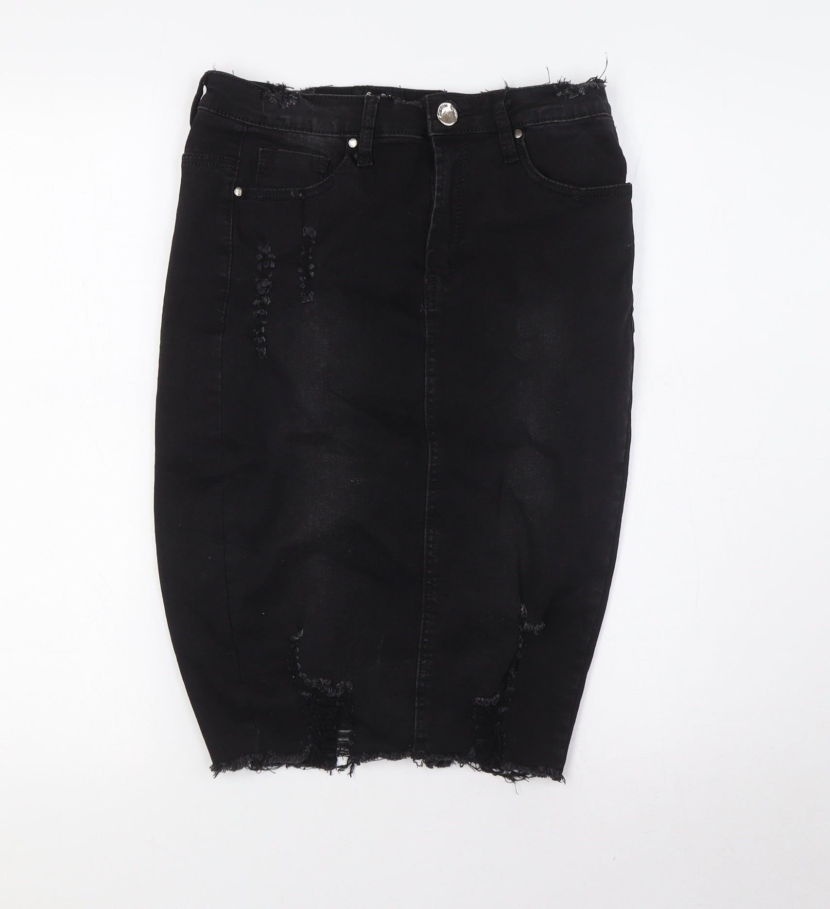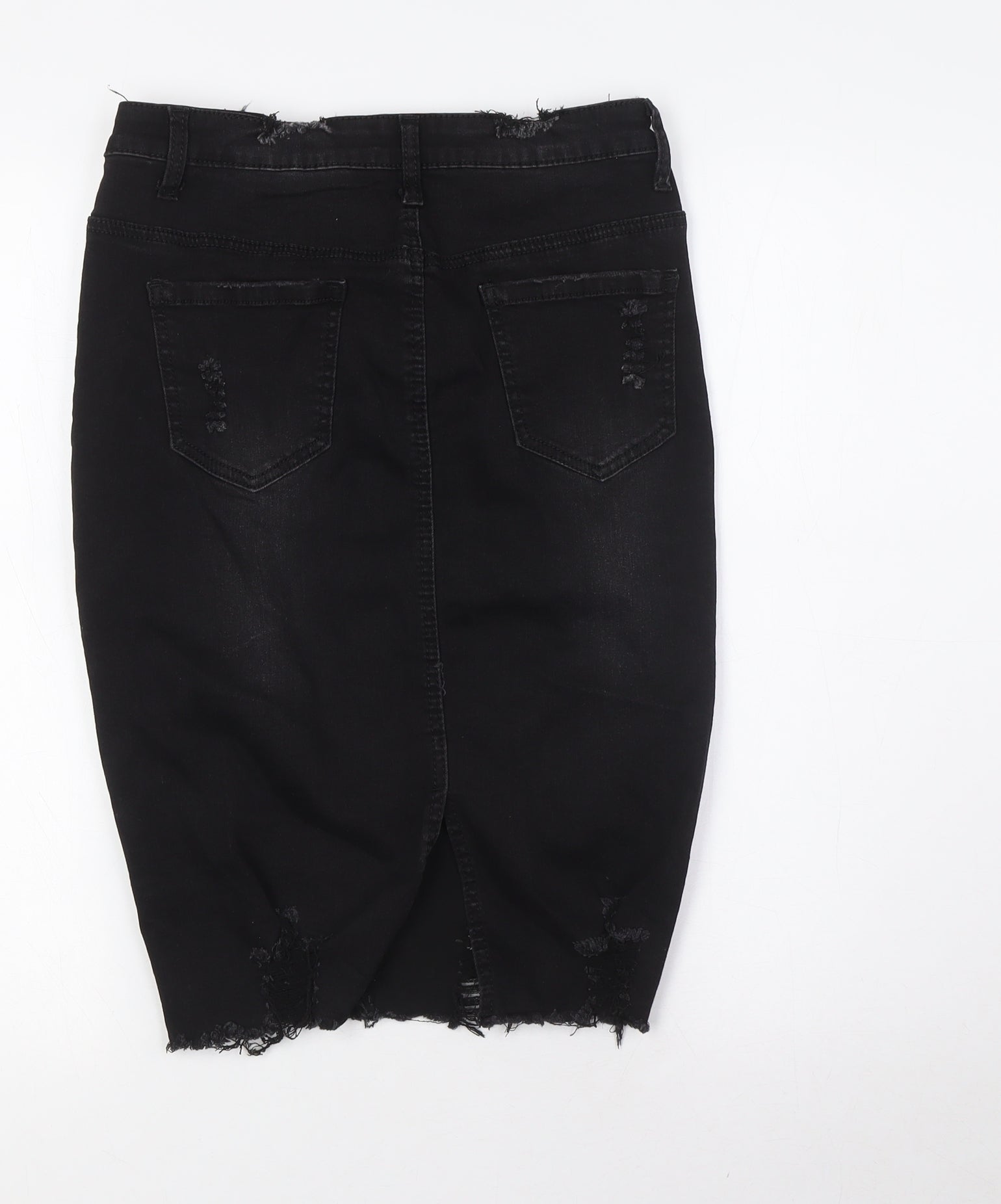 Denim Club Womens Black Cotton Straight & Pencil Skirt Size 10 Button - Destressed