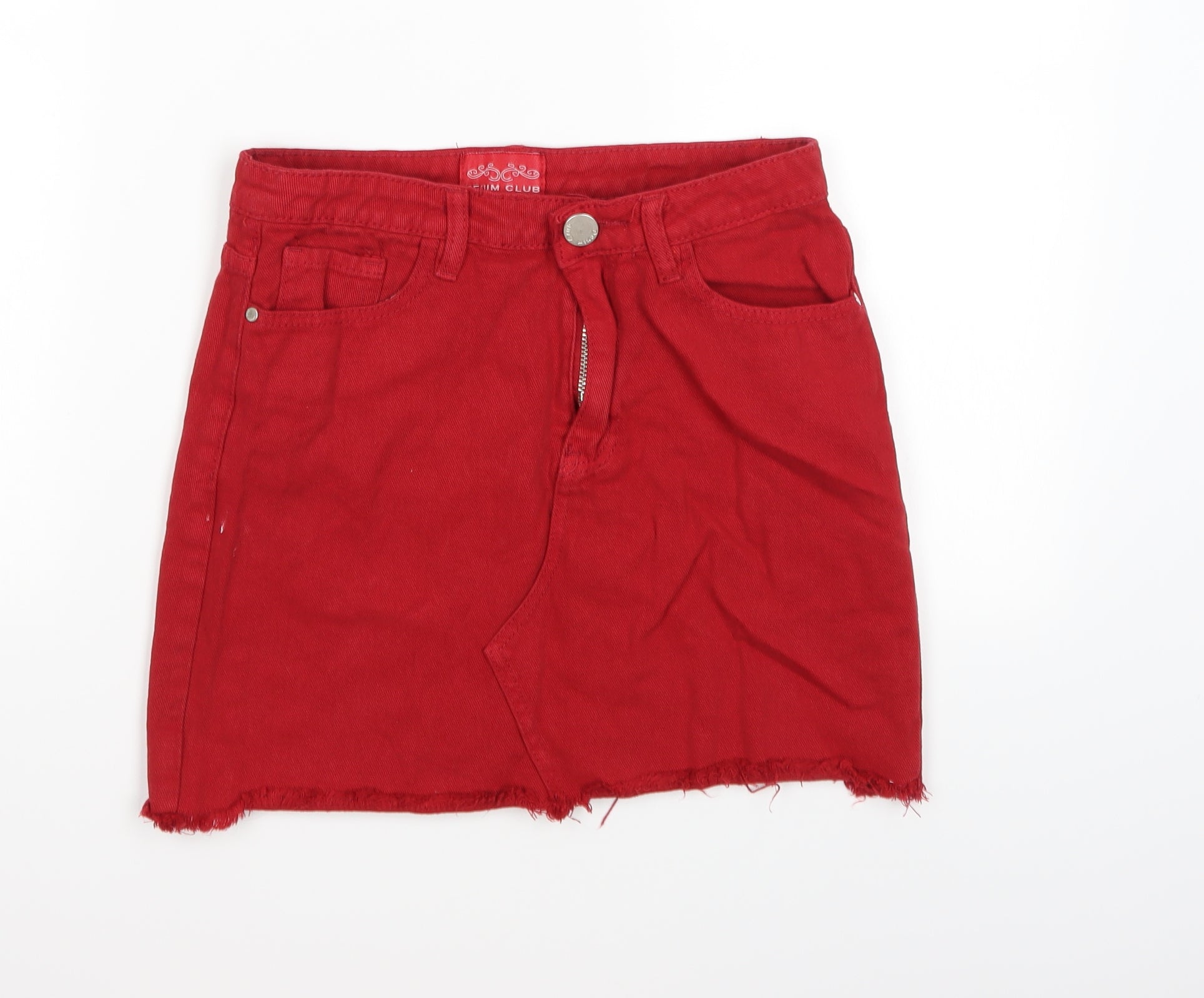 Denim Club Womens Red Denim A-Line Skirt Size 8