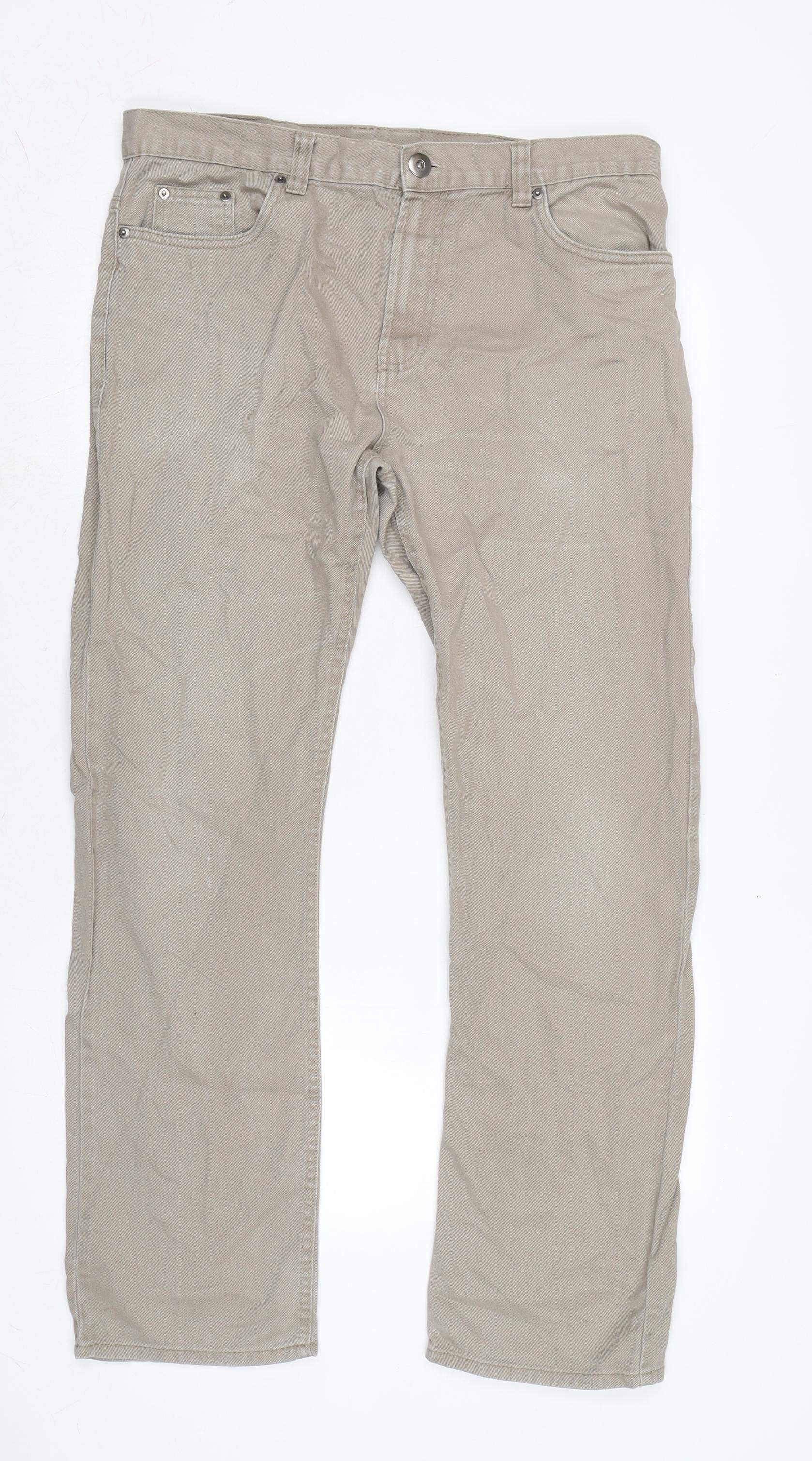 Denim & Co. Mens Beige Cotton Straight Jeans Size 33 in L32 in Regular Zip