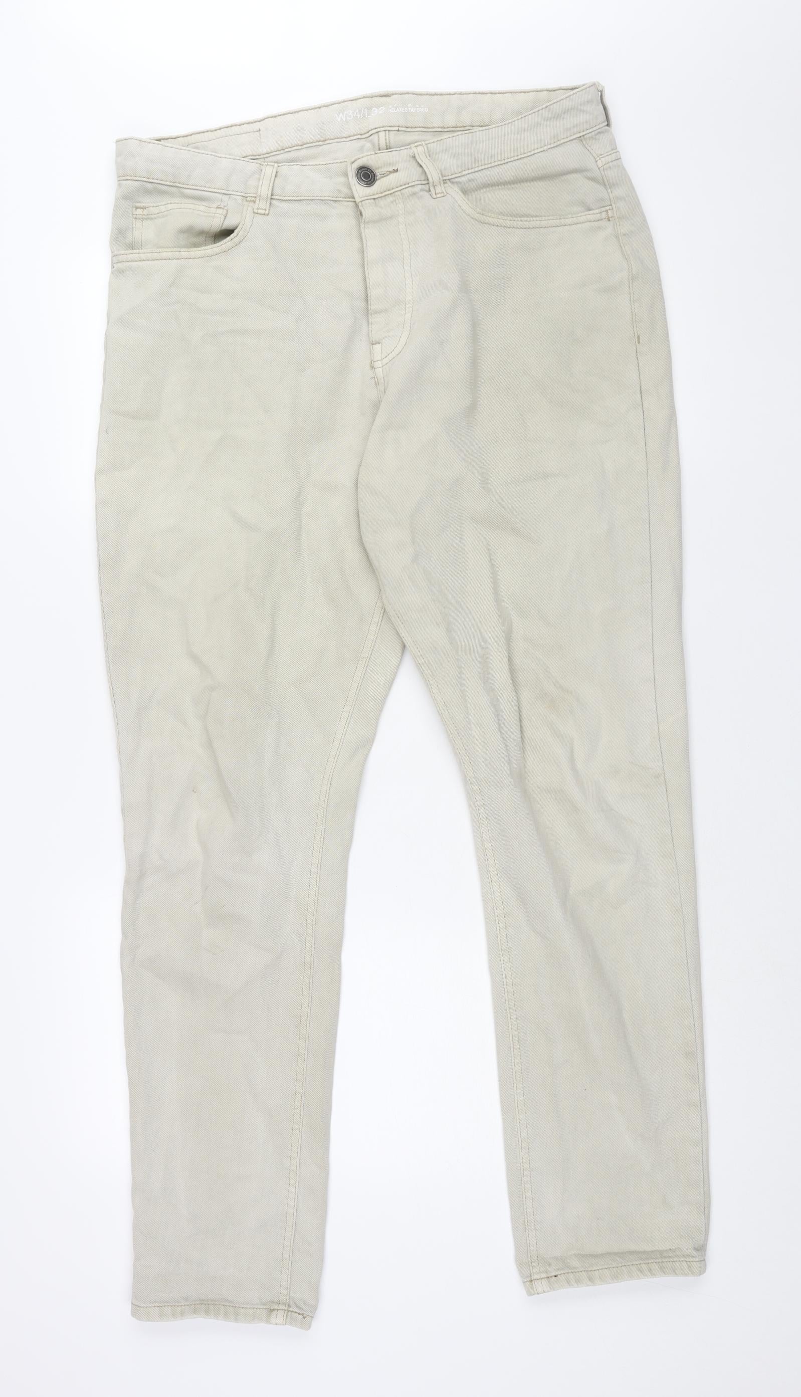Denim & Co. Mens Beige Cotton Straight Jeans Size 34 in L32 in Regular Zip