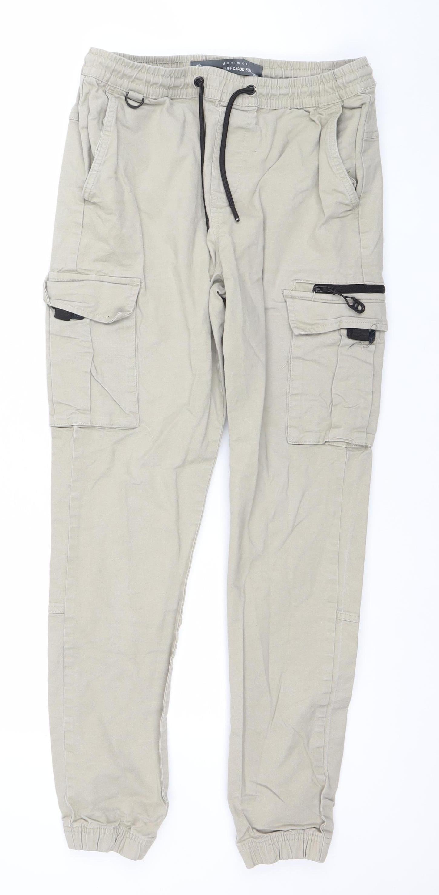 Denim Co. Men's Beige Slim Cargo Trousers Size S Elastic Waist