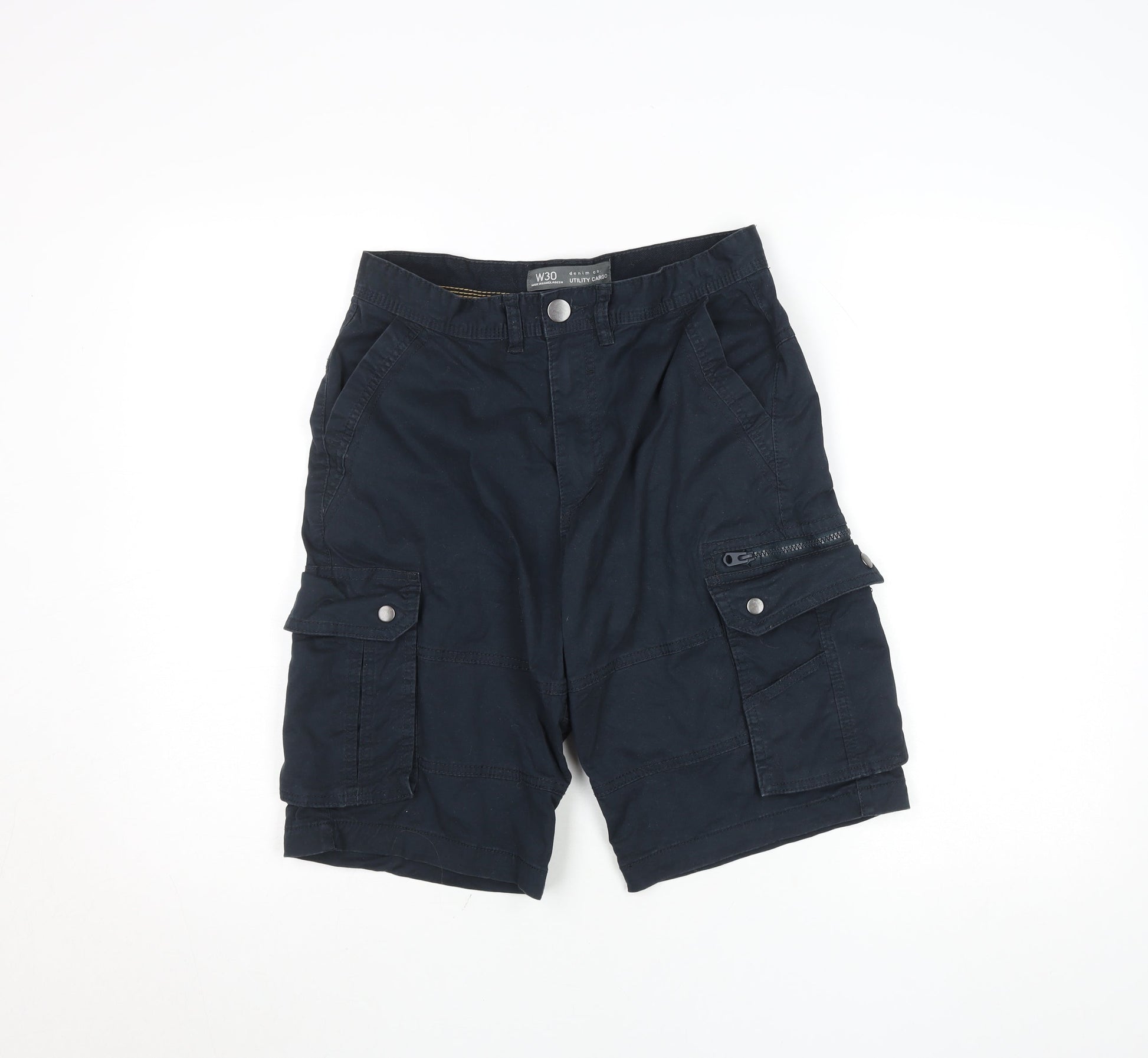 Denim Co Mens Black Cargo Shorts W30 Utility Cotton Blend