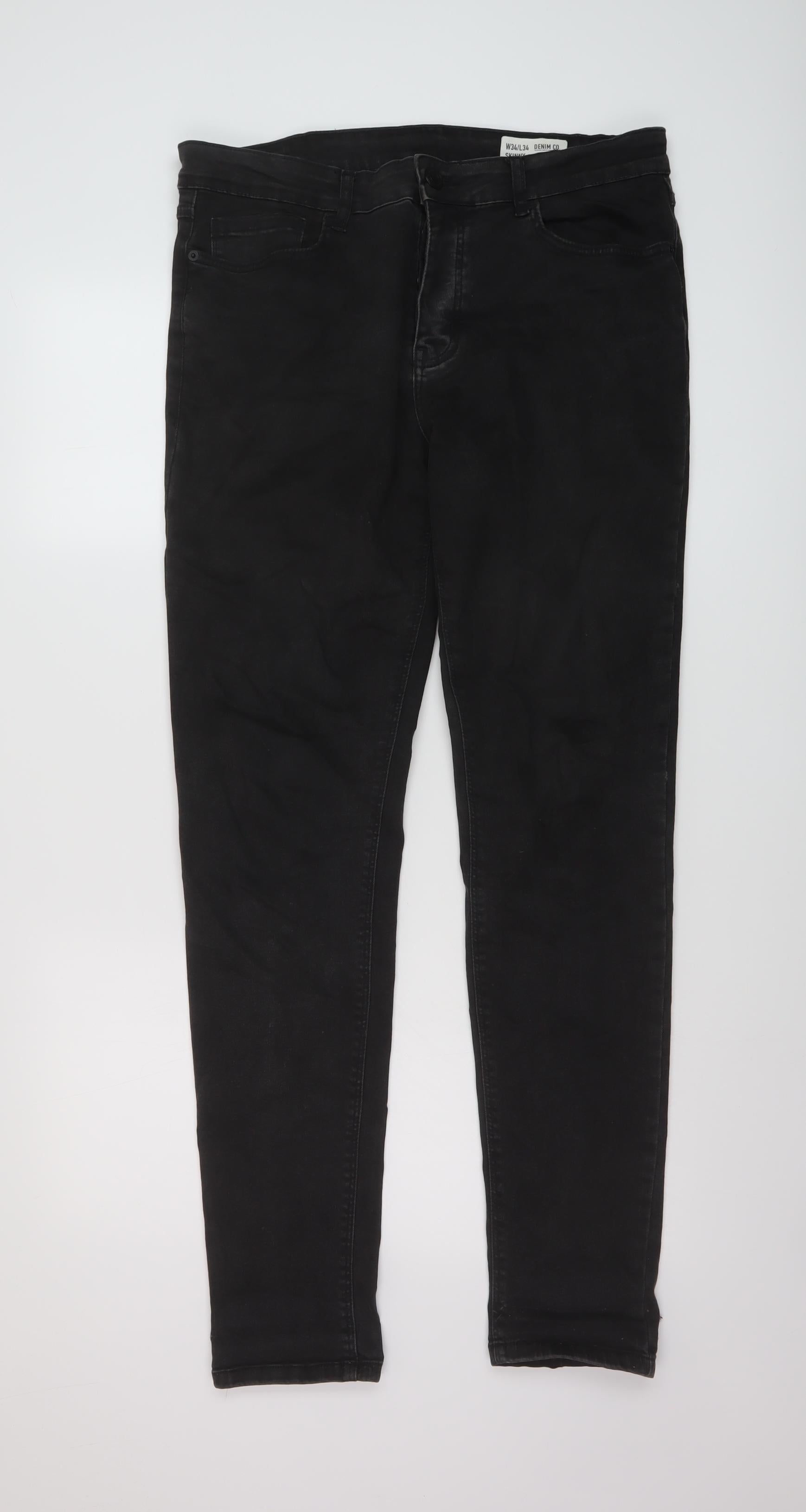 Denim & Co. Mens Black Cotton Straight Jeans Size 34 in L34 in Regular Button