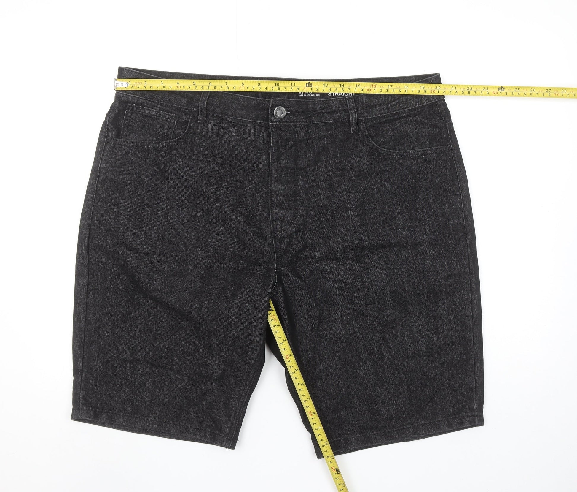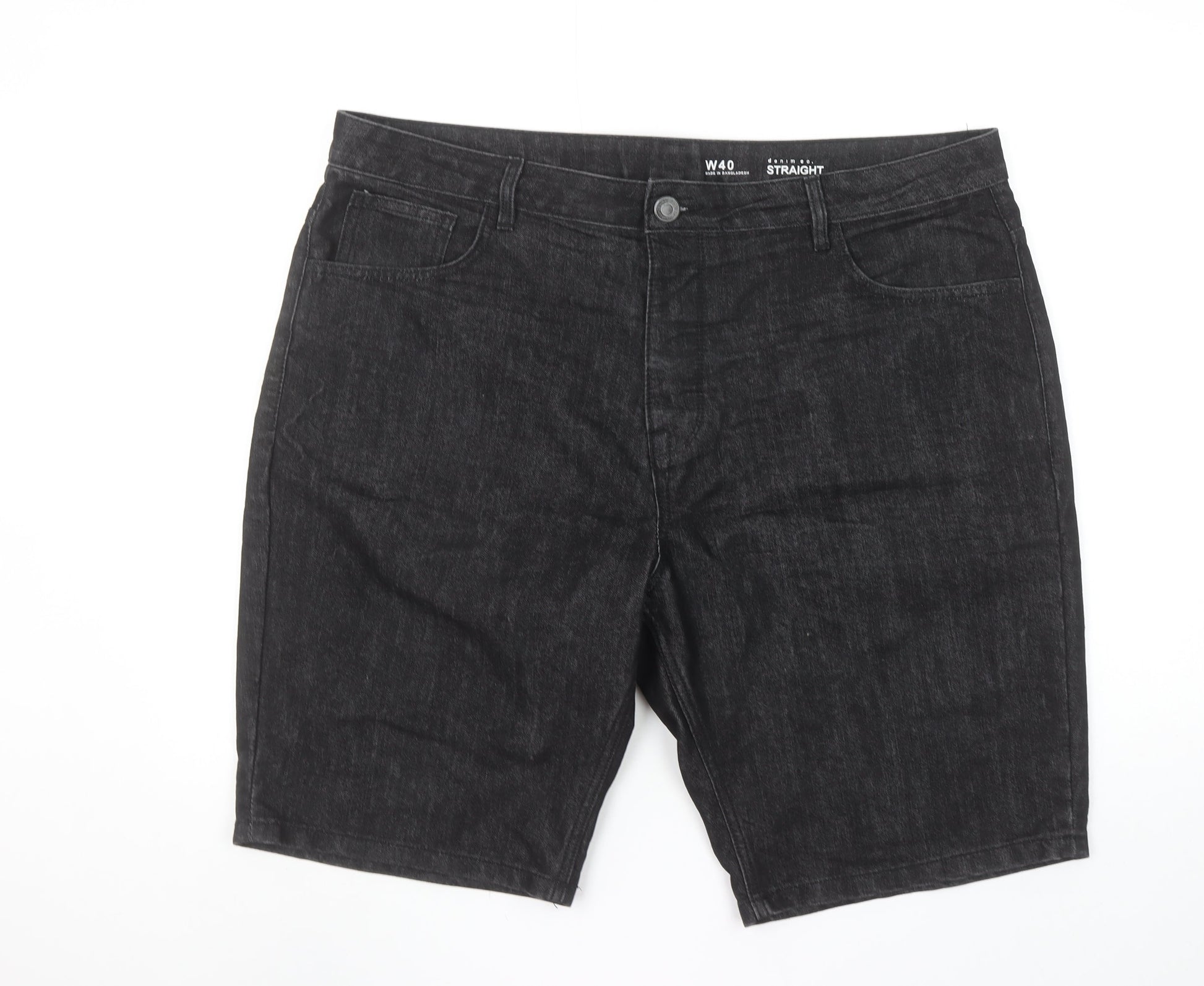 Denim Co Mens Black Denim Straight Shorts W40 Cotton Blend