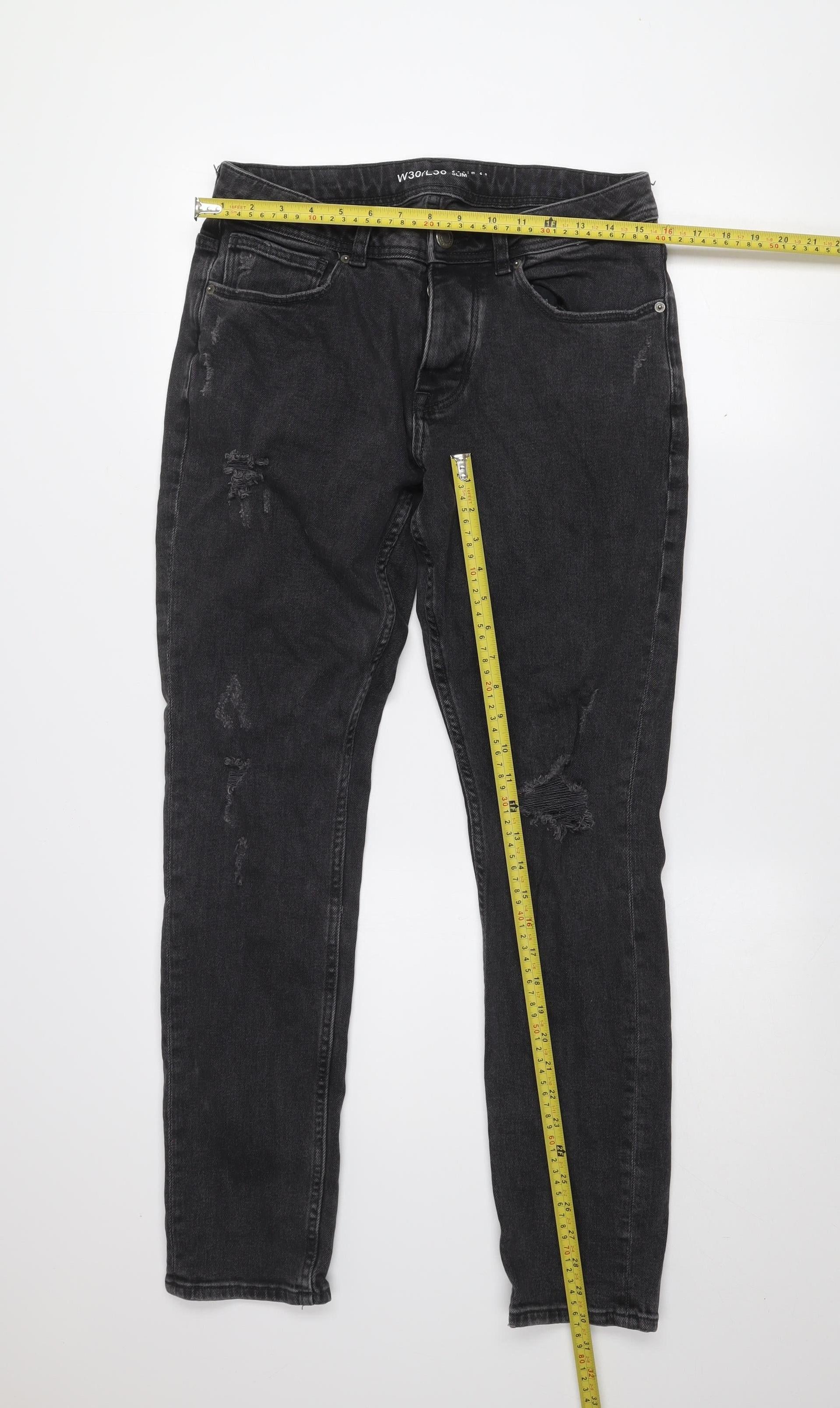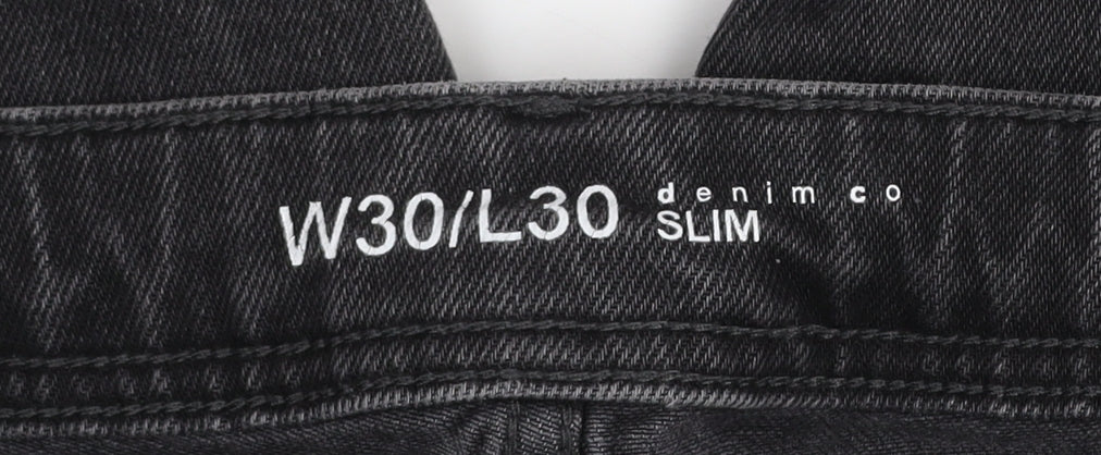 Denim Co Men's Black Slim Fit Distressed Jeans W30 L30
