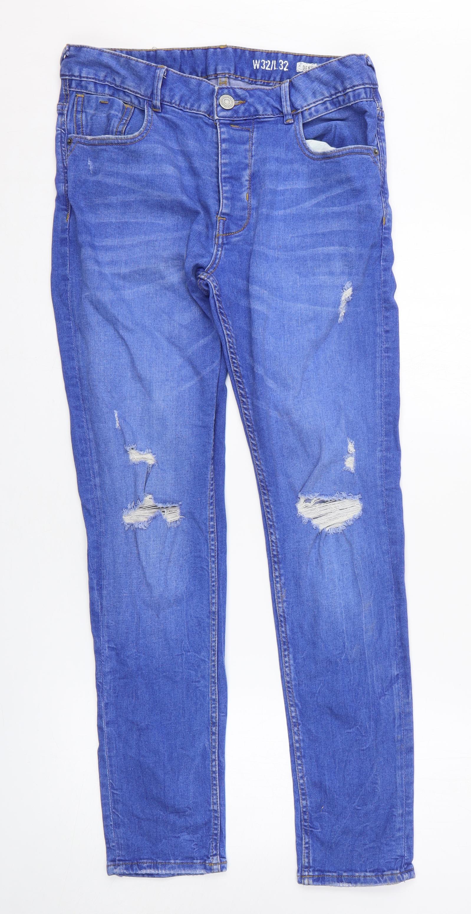Denim & Co. Mens Blue Cotton Skinny Jeans Size 32 in L32 in Regular Button - Distressed Look