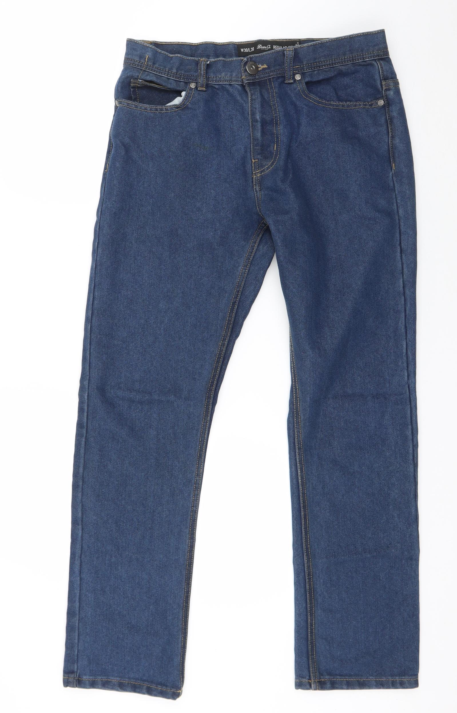 Denim & Co. Mens Blue Cotton Straight Jeans Size 30 in L29 in Regular Button