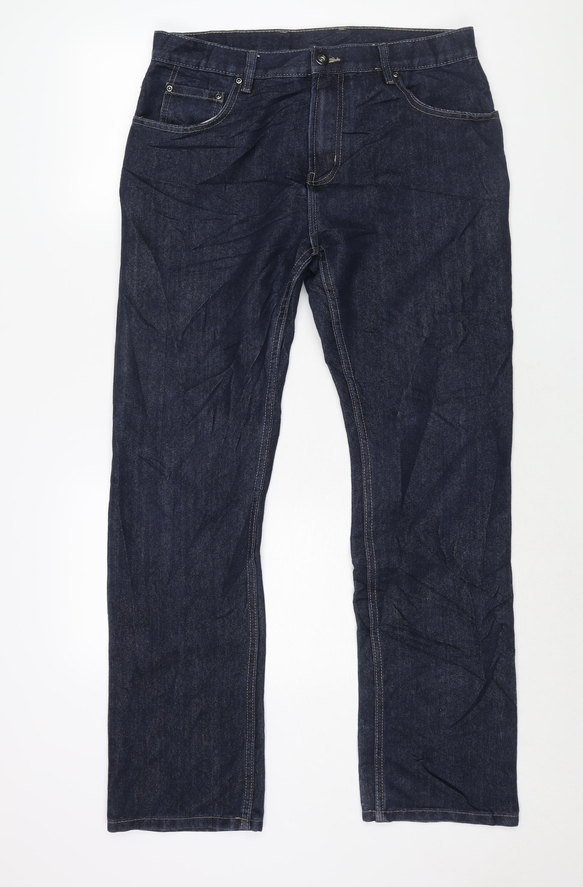 Denim & Co. Mens Blue Cotton Straight Jeans Size 34 in L32 in Regular Zip