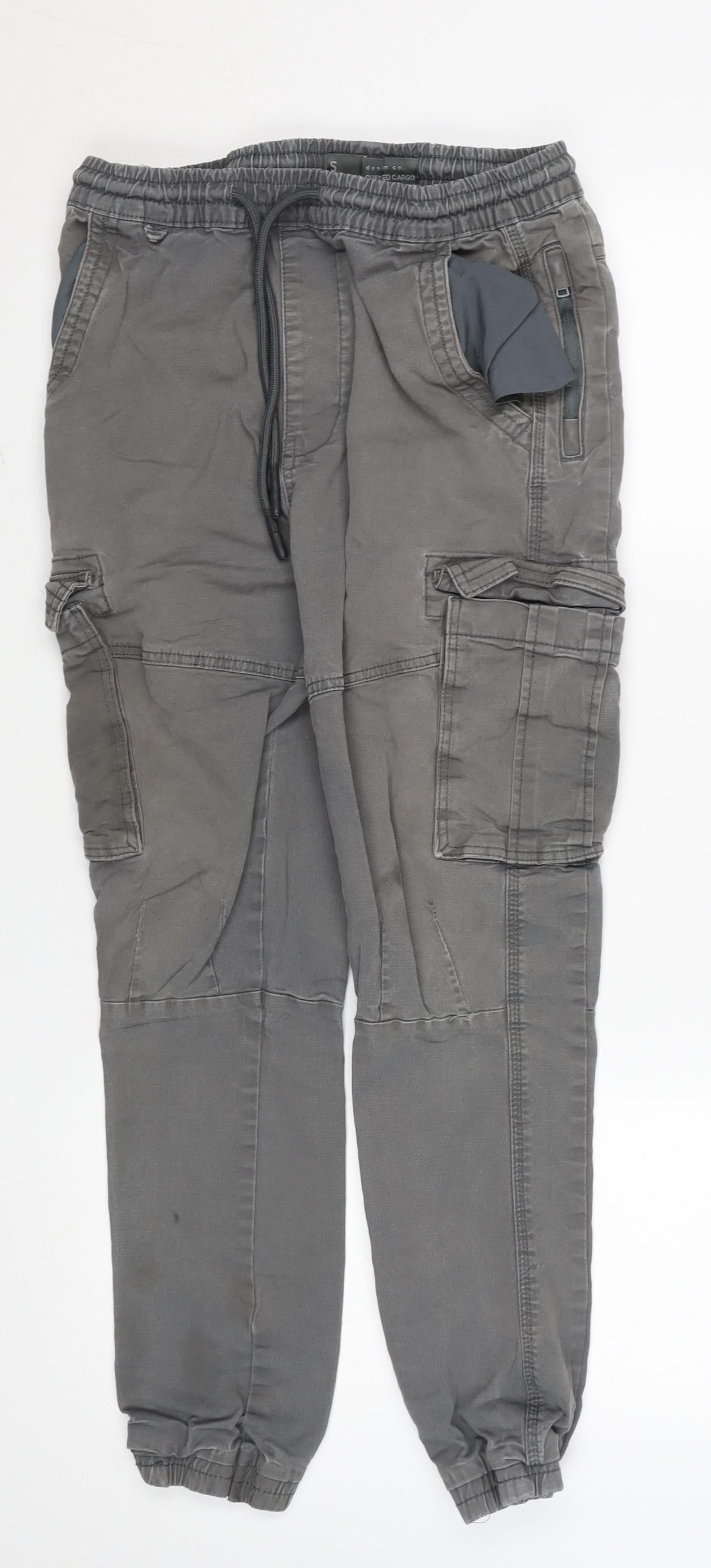 Denim Co. Men's Grey Cargo Cuffed Jogger Trousers Size S