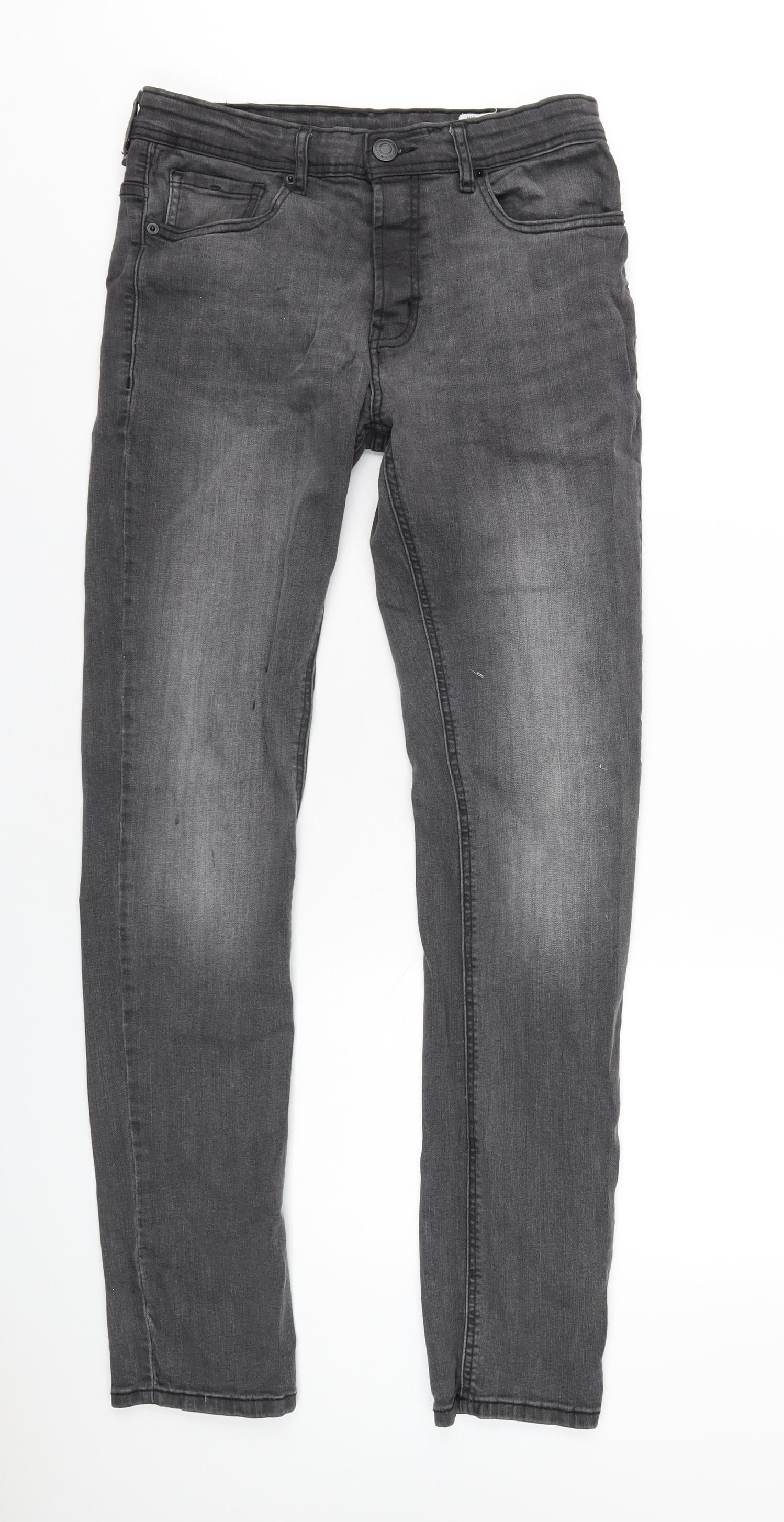 Denim & Co. Mens Grey Cotton Straight Jeans Size 30 in L32 in Slim Zip