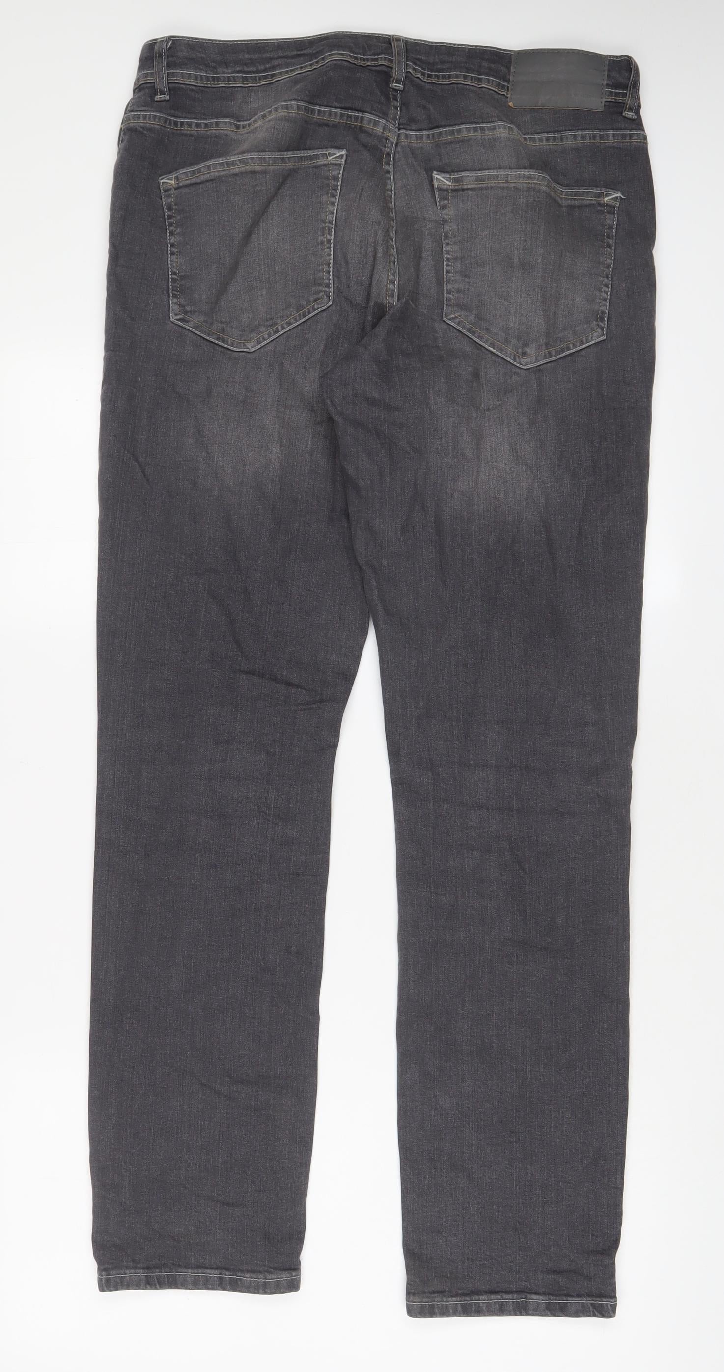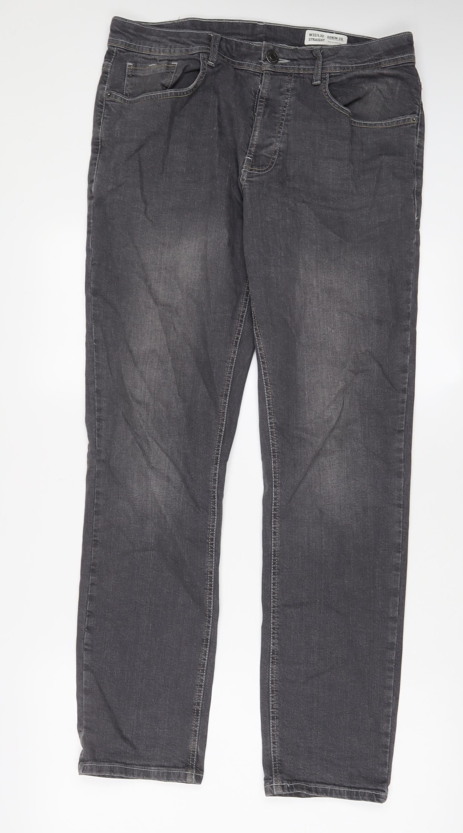 Denim & Co. Mens Grey Cotton Straight Jeans Size 32 in L32 in Regular Button