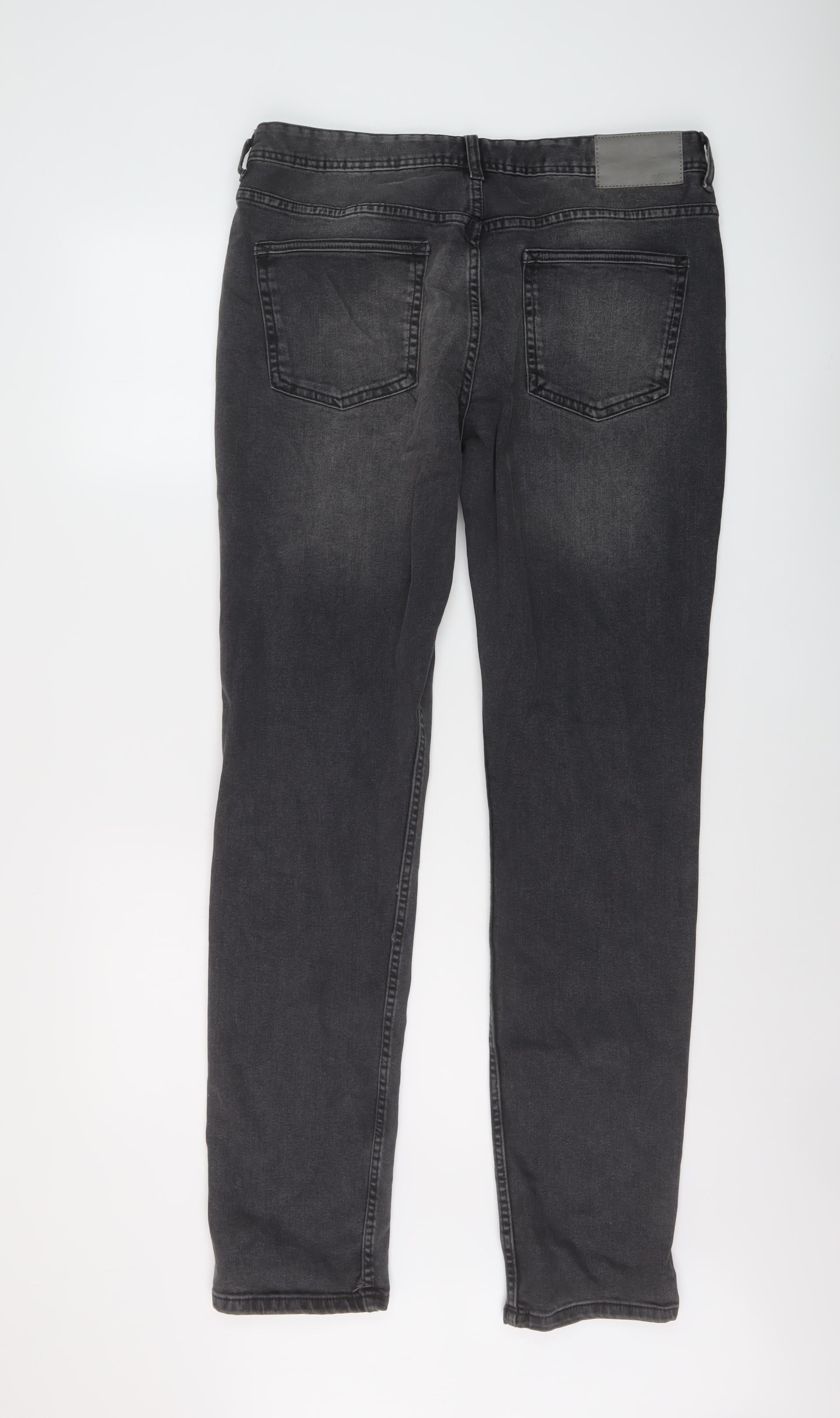 Denim & Co. Mens Grey Cotton Straight Jeans Size 34 in L34 in Slim Button