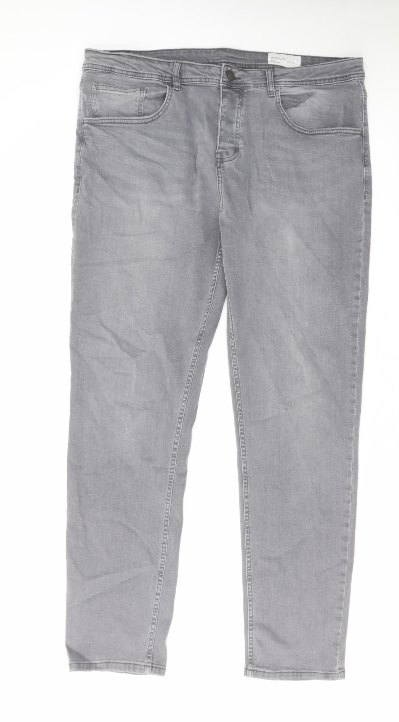 Denim & Co. Mens Grey Cotton Straight Jeans Size 38 in L32 in Slim Zip