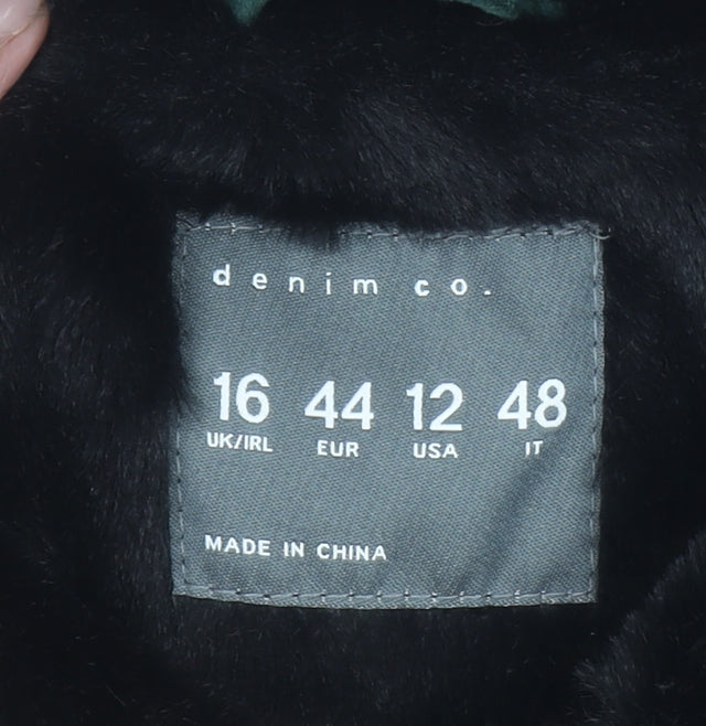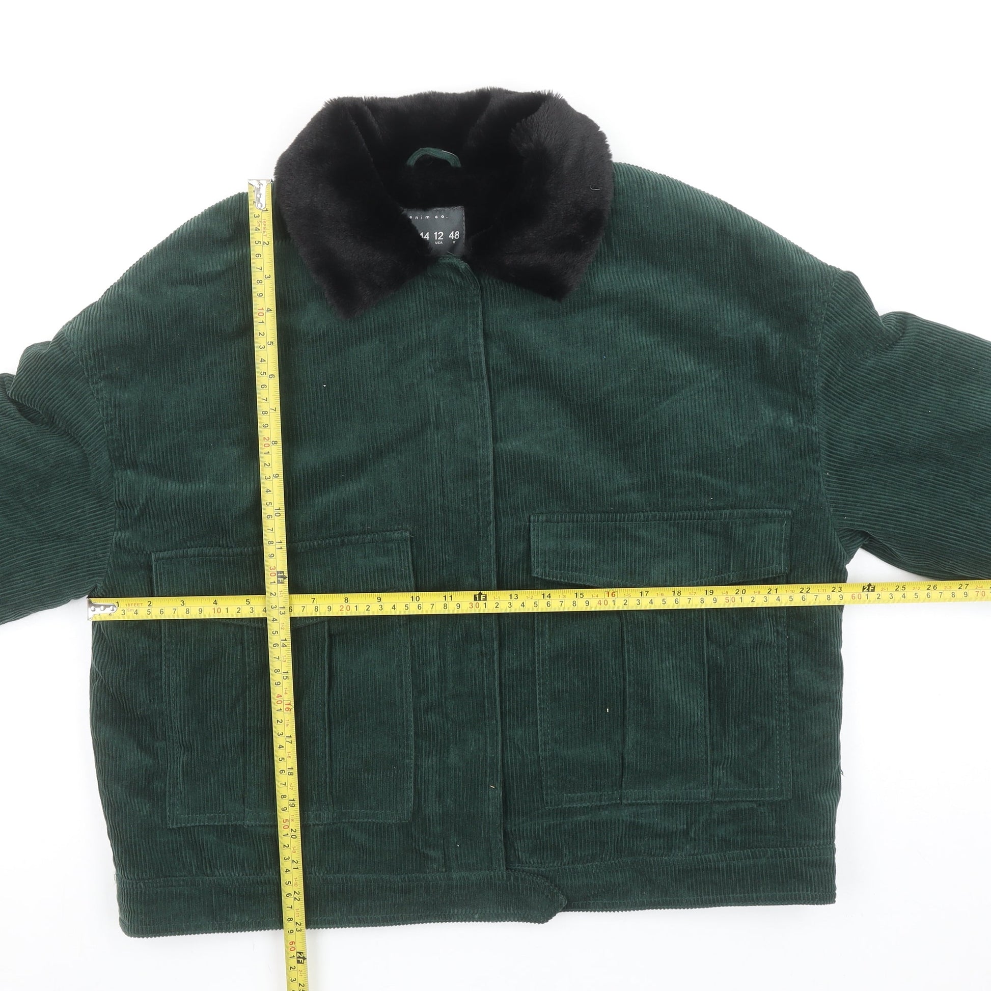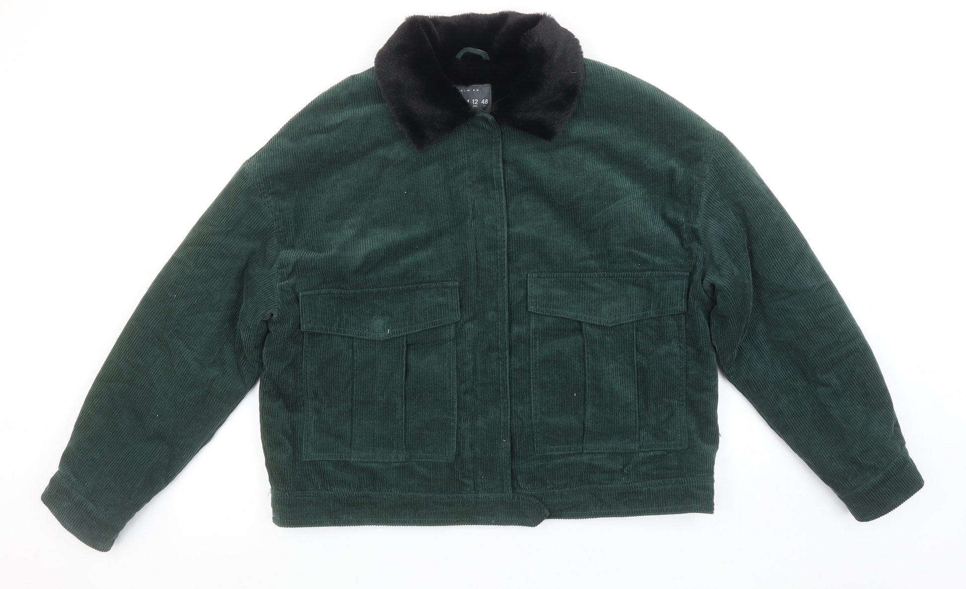 Denim Co. Women Green Corduroy Faux Fur Collar Bomber Jacket UK 16