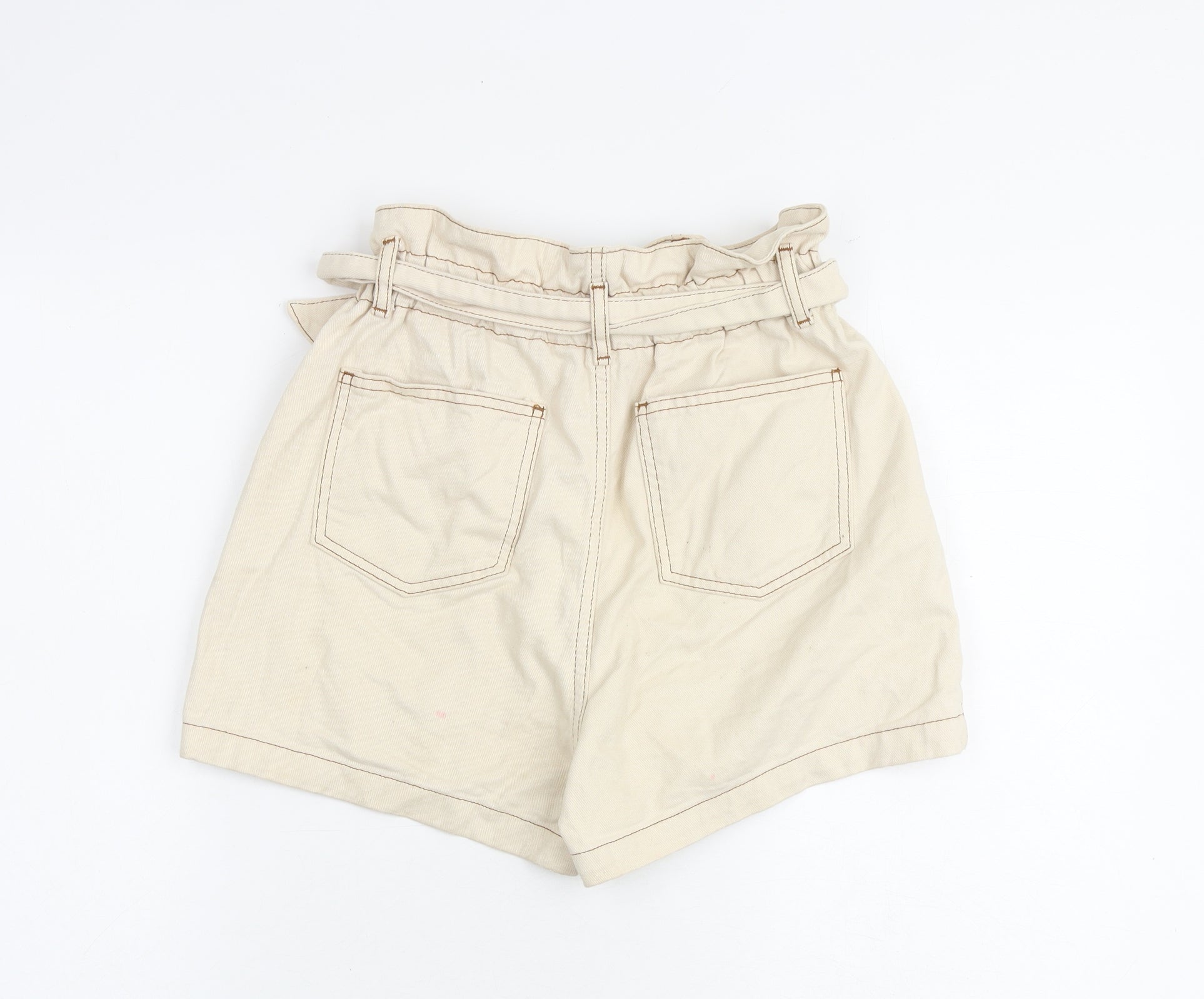 Denim & Co. Womens Beige 100% Cotton Paperbag Shorts Size 10 L3 in Regular Zip - Belted
