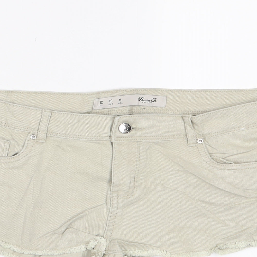Denim & Co. Womens Beige Cotton Hot Pants Shorts Size 12 Regular Zip - Pockets