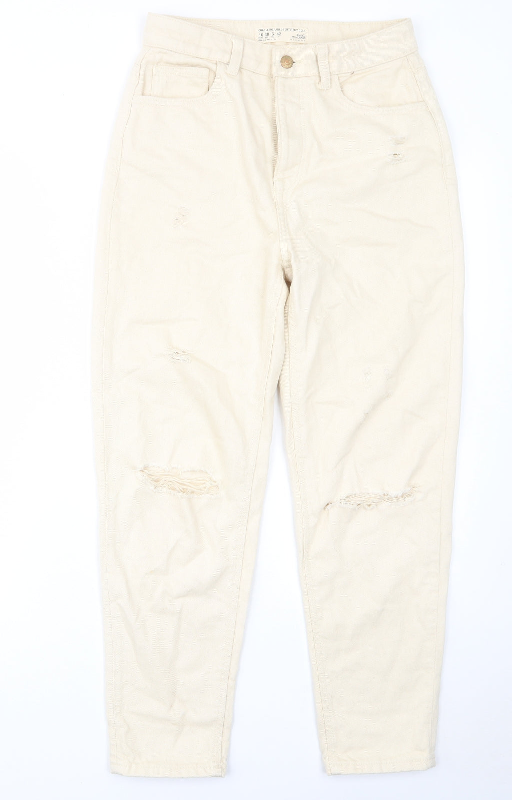 Denim & Co. Womens Beige Cotton Mom Jeans Size 10 L28 in Regular Button - Pockets, Belt Loops