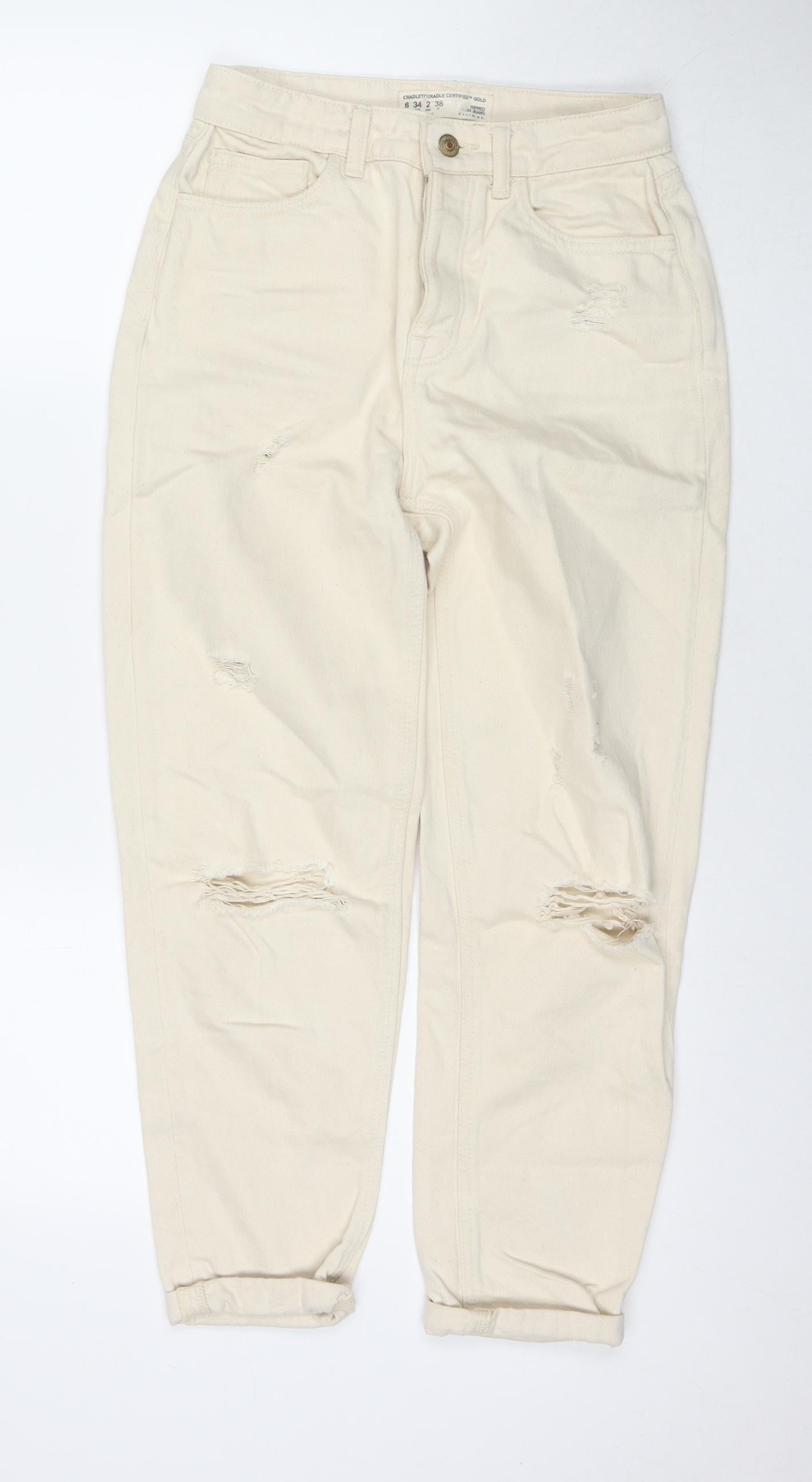 Denim & Co. Womens Beige Cotton Mom Jeans Size 6 L24 in Regular Button