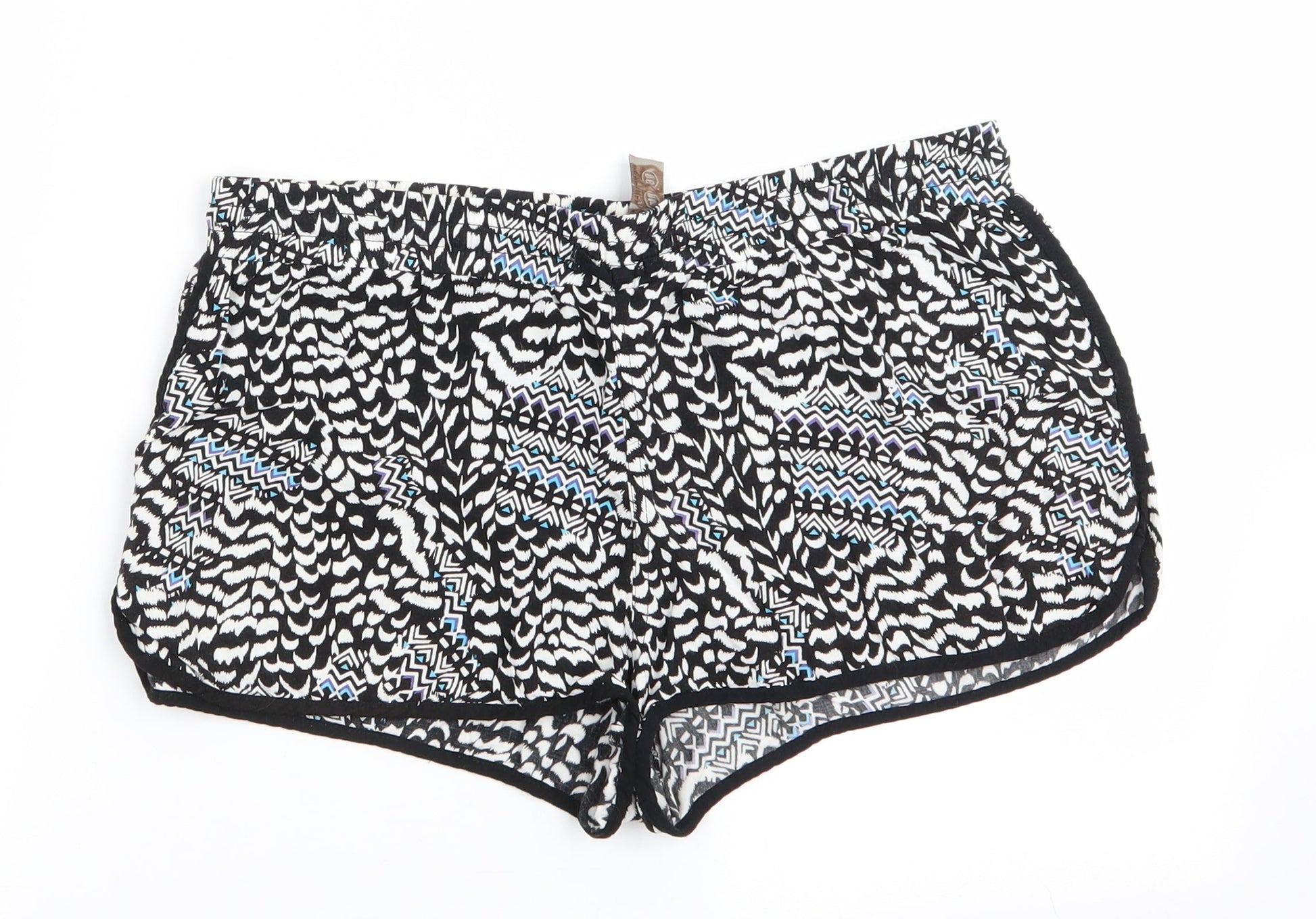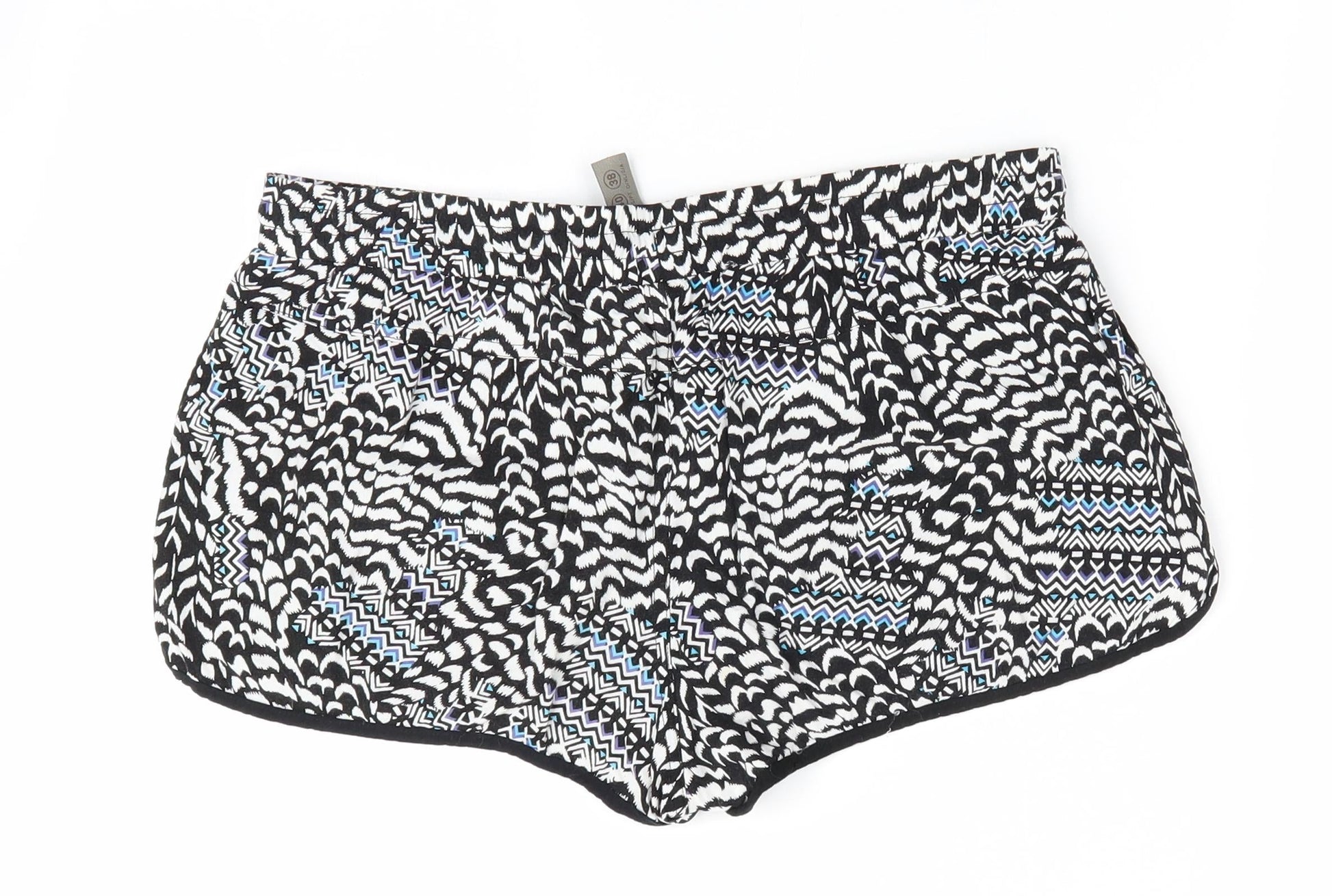 Denim Co Womens Black Animal Print Paperbag Shorts Size 12