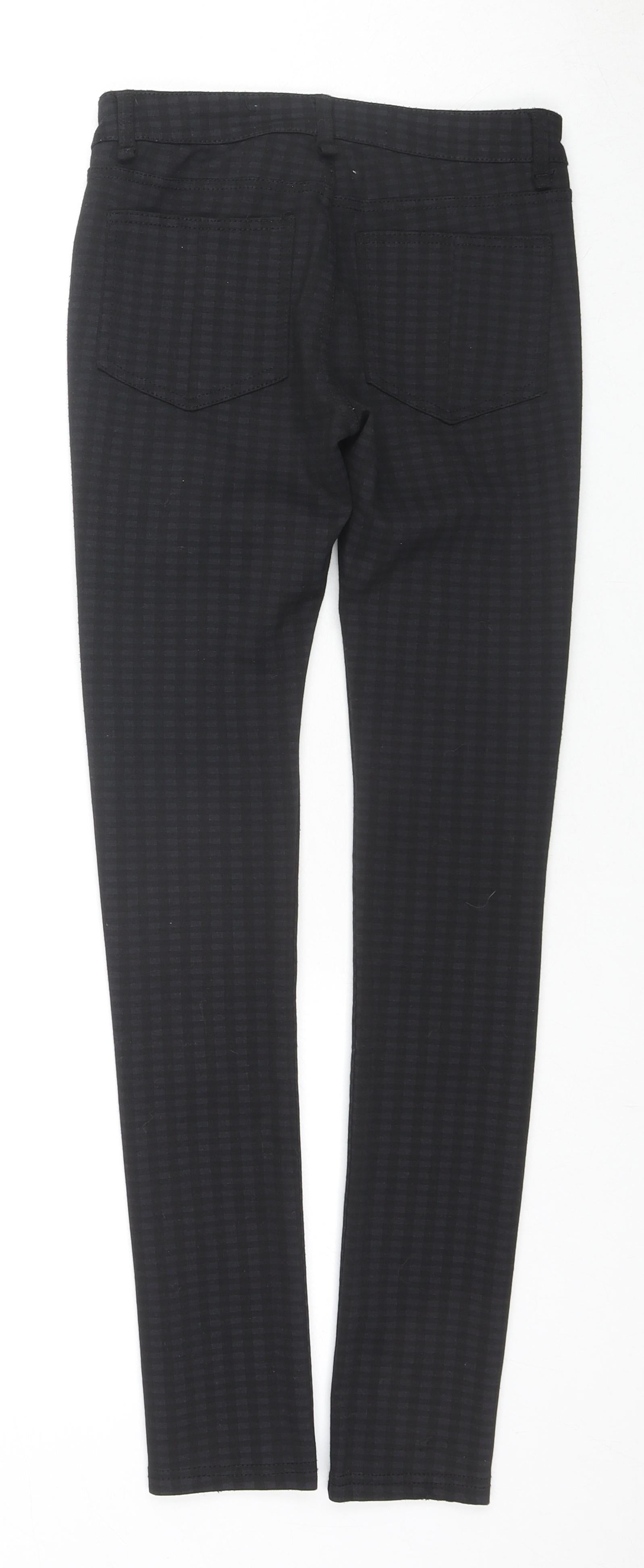 Denim & Co. Womens Black Check Polyester Trousers Size 6 L28 in Regular Zip