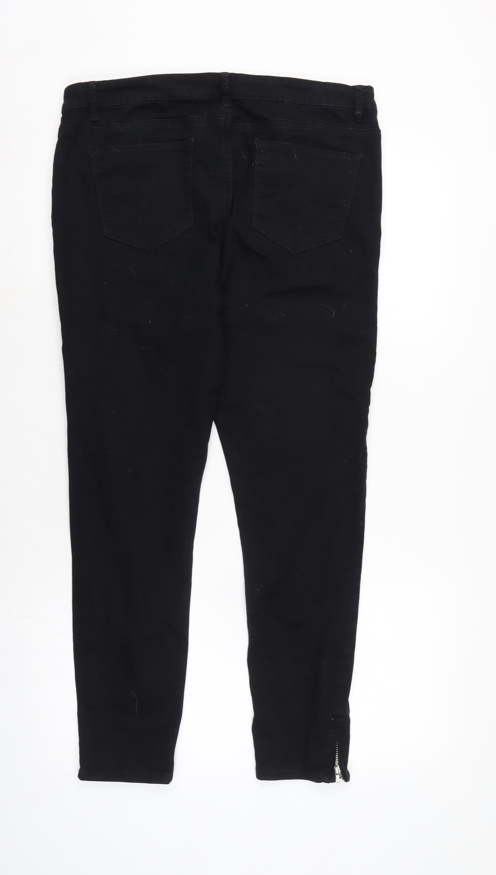 Denim & Co. Womens Black Cotton Blend Straight Jeans Size 16 L25.5 in Regular Zip - Zipped ankle.