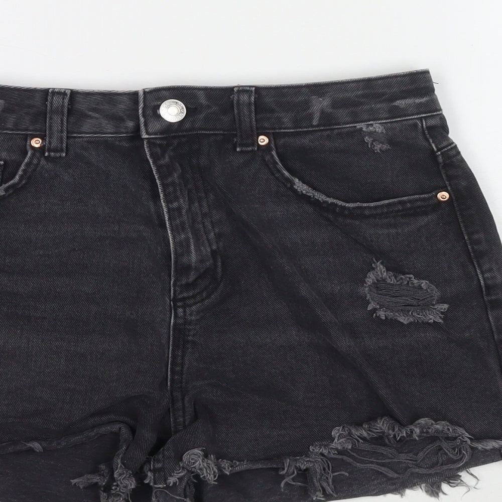 Denim & Co. Womens Black Cotton Cut-Off Shorts Size 12 L3 in Regular Zip