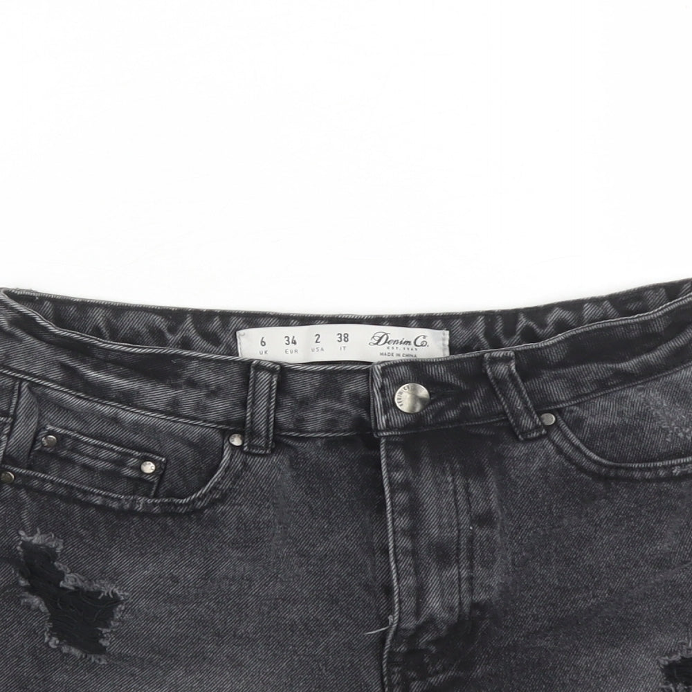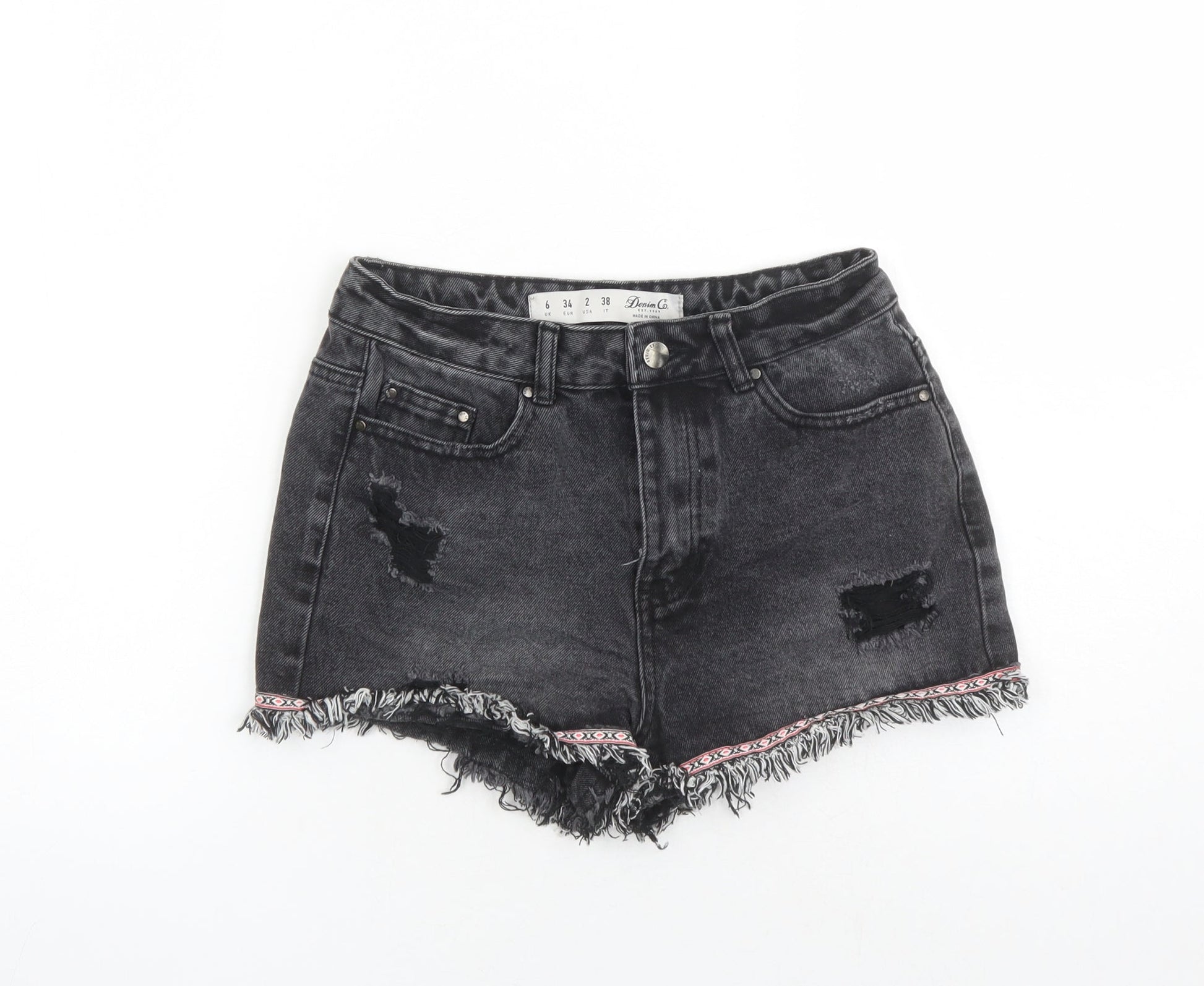 Denim & Co. Womens Black Cotton Cut-Off Shorts Size 6 L3 in Regular Zip - Embroidered Detail