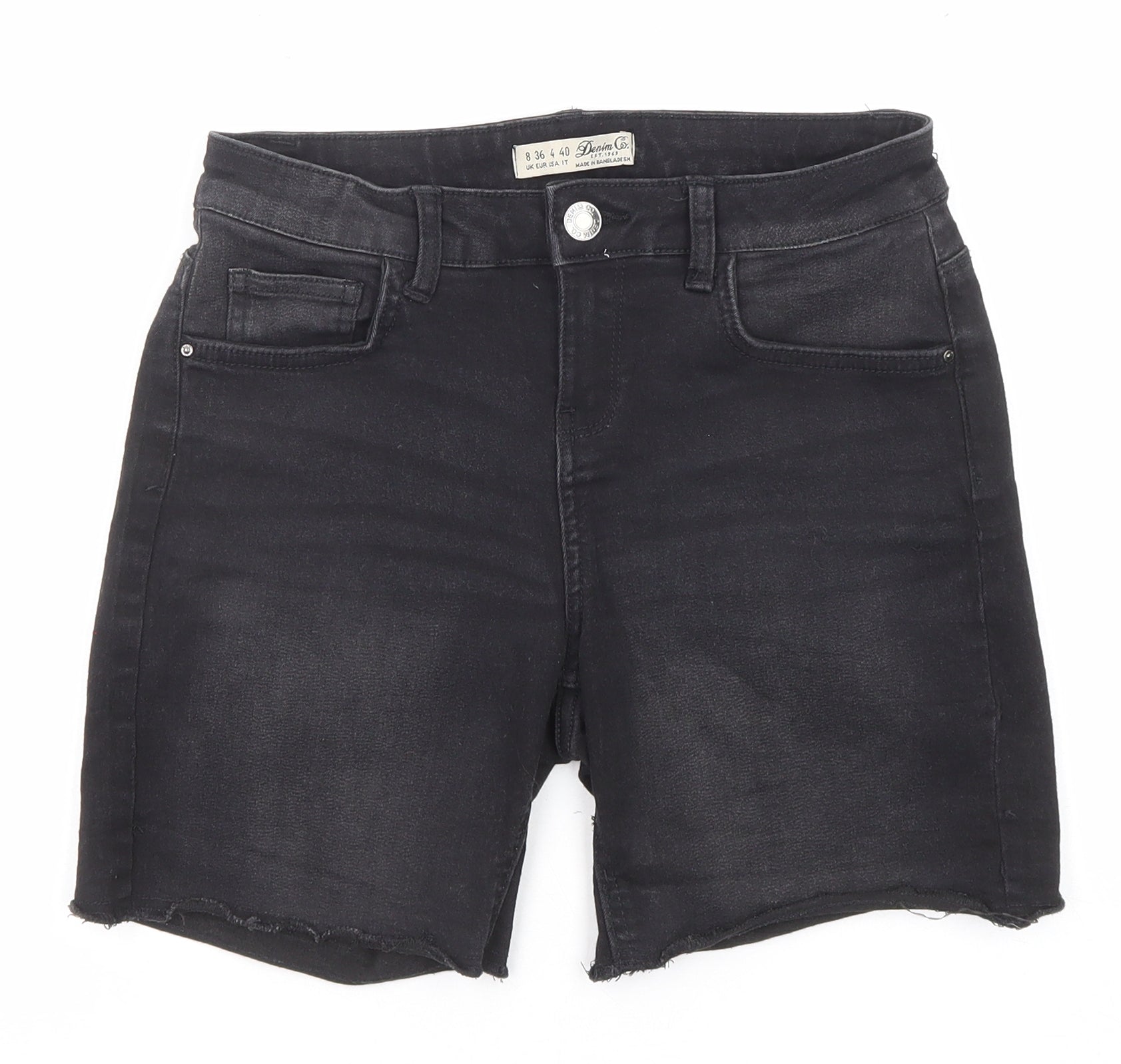 Denim & Co. Womens Black Cotton Cut-Off Shorts Size 8 Regular Zip