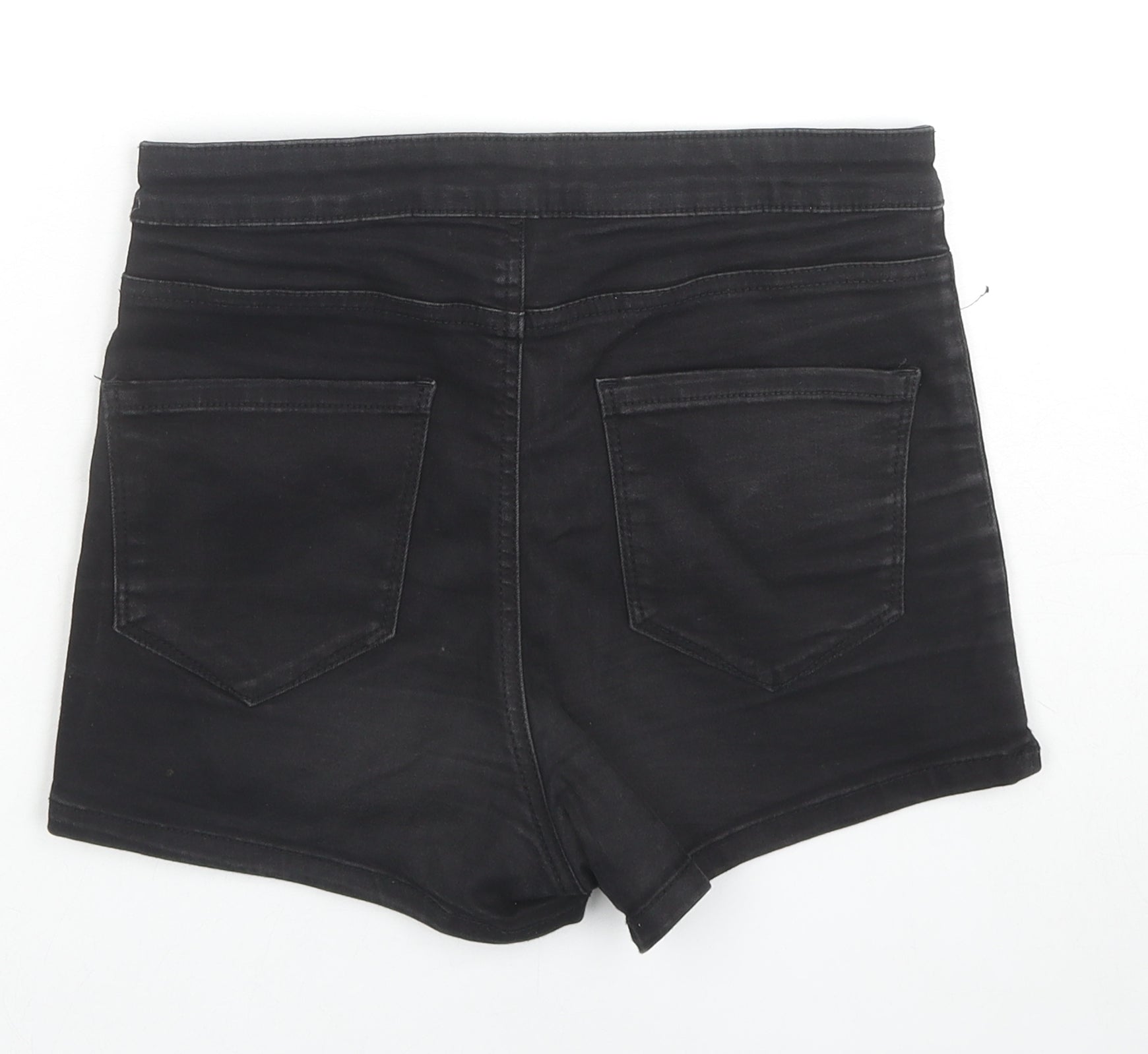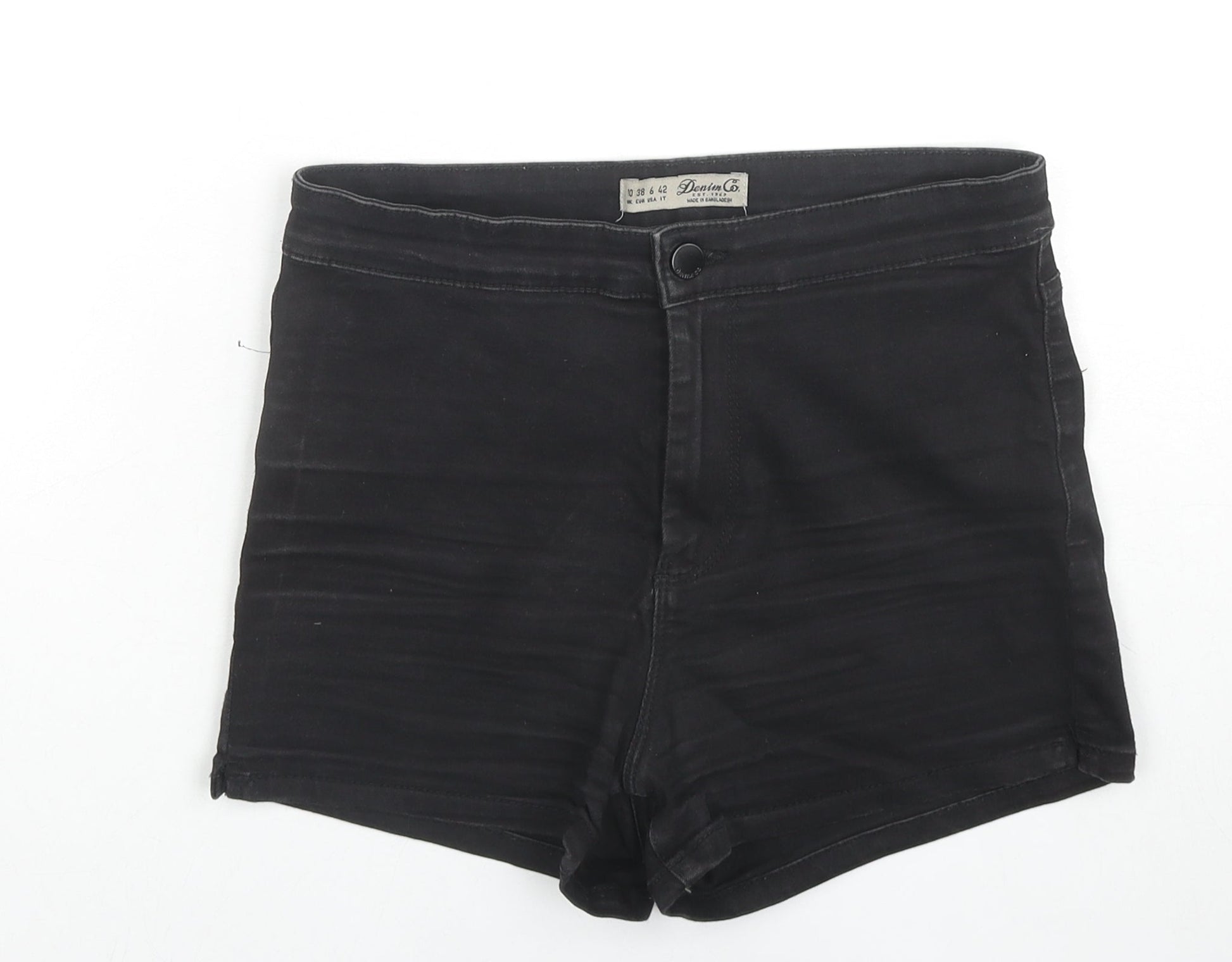 Denim & Co. Womens Black Cotton Hot Pants Shorts Size 10 L3 in Regular Zip